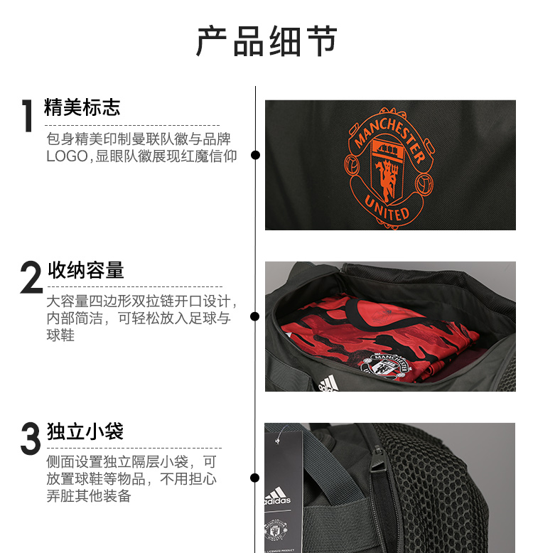小李子专柜正品ADIDAS阿迪达斯曼联运动训练单肩足球装备包FS0152