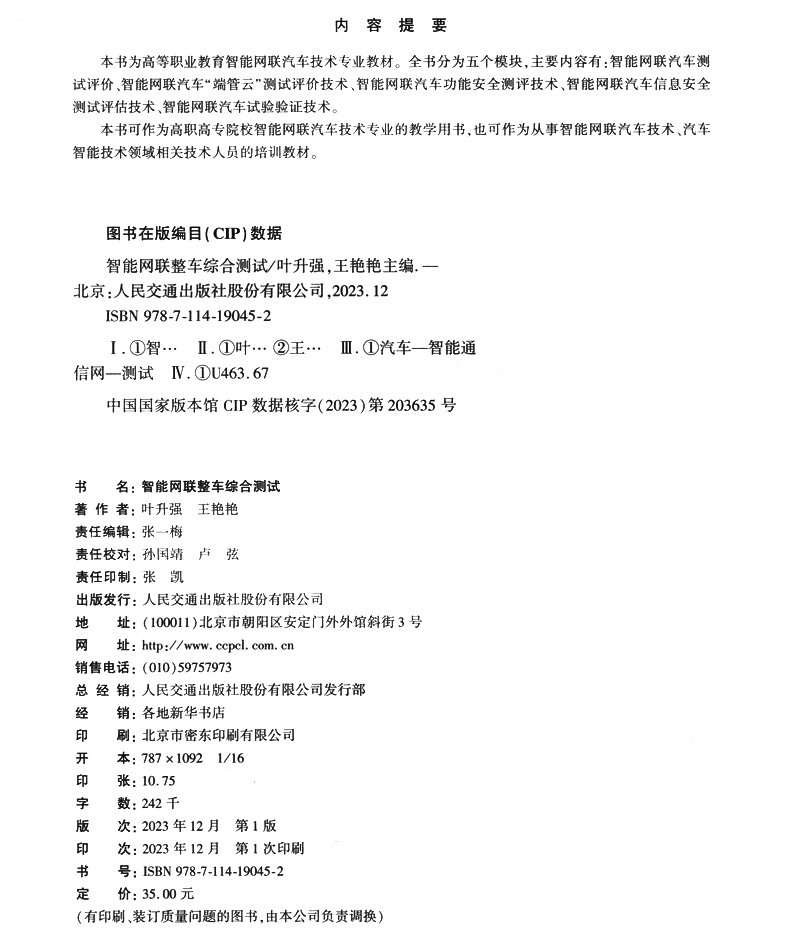 书名:智能网联整车综合测试