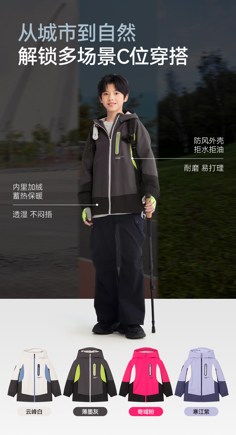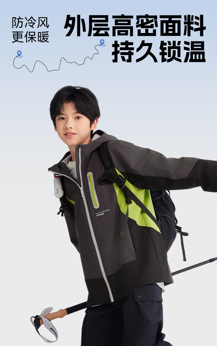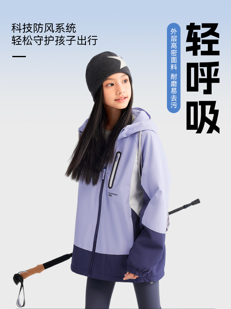 水孩儿儿童外套2025秋装新品中大童厚风衣拒水拒油污拼色户外上衣