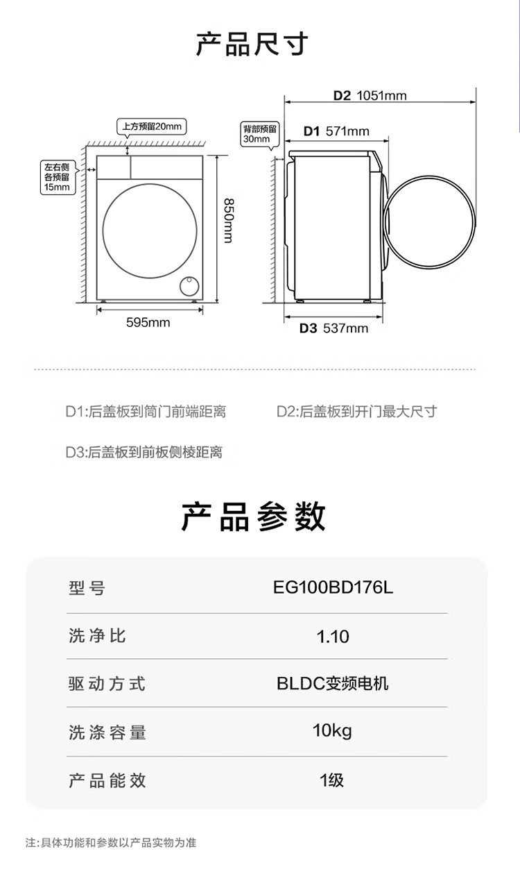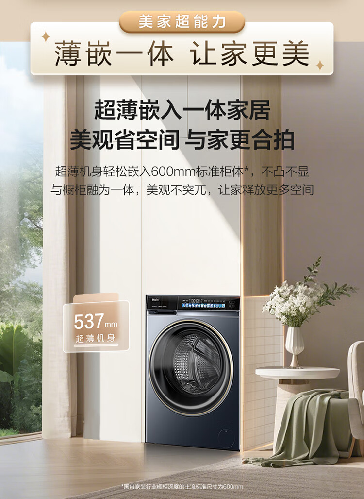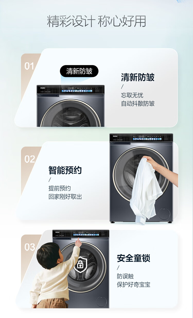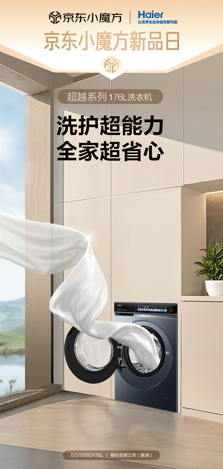 海尔(Haier)滚筒洗衣机全自动10公斤大容量 家用家电国家补贴20% 超薄以旧换新 EG100BD176L