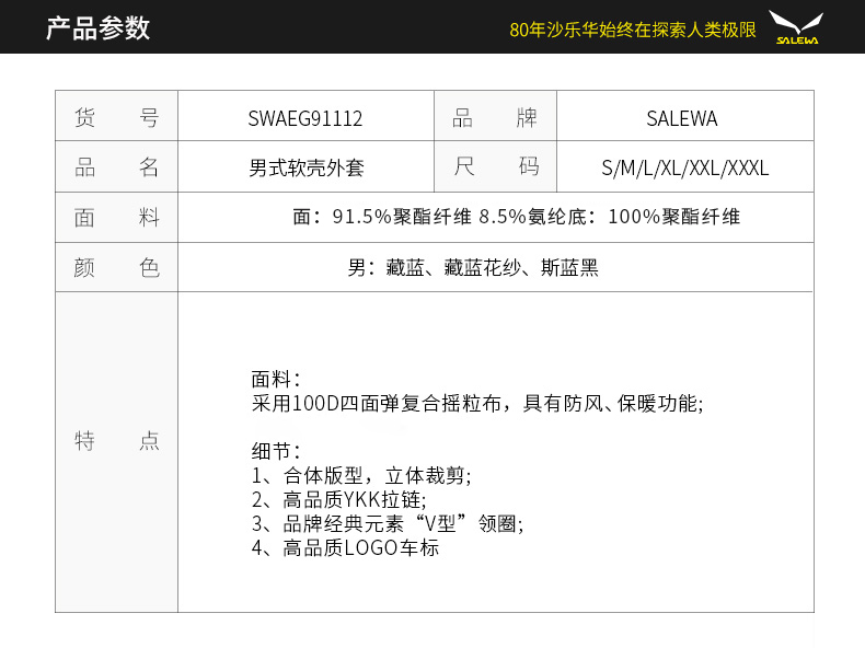 SALEWA沙乐华/男式软壳外套 SWAEG91112