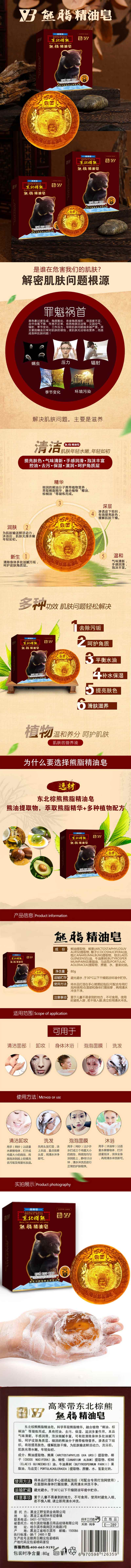 东北棕熊熊脂精油皂 80g/块 熊油提取物 萃取熊脂精华+多种植物配方 清洁面部卸妆身体沐浴