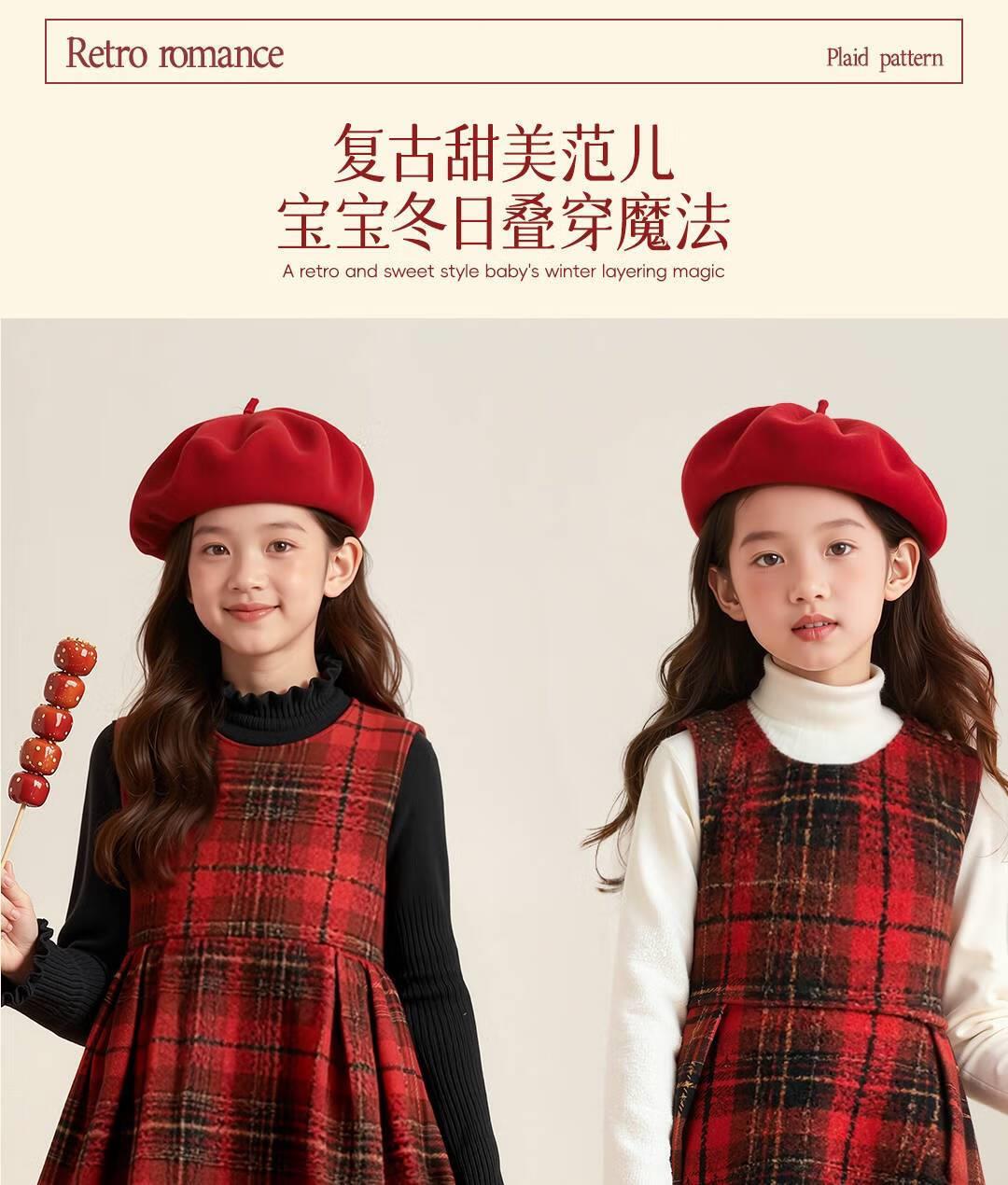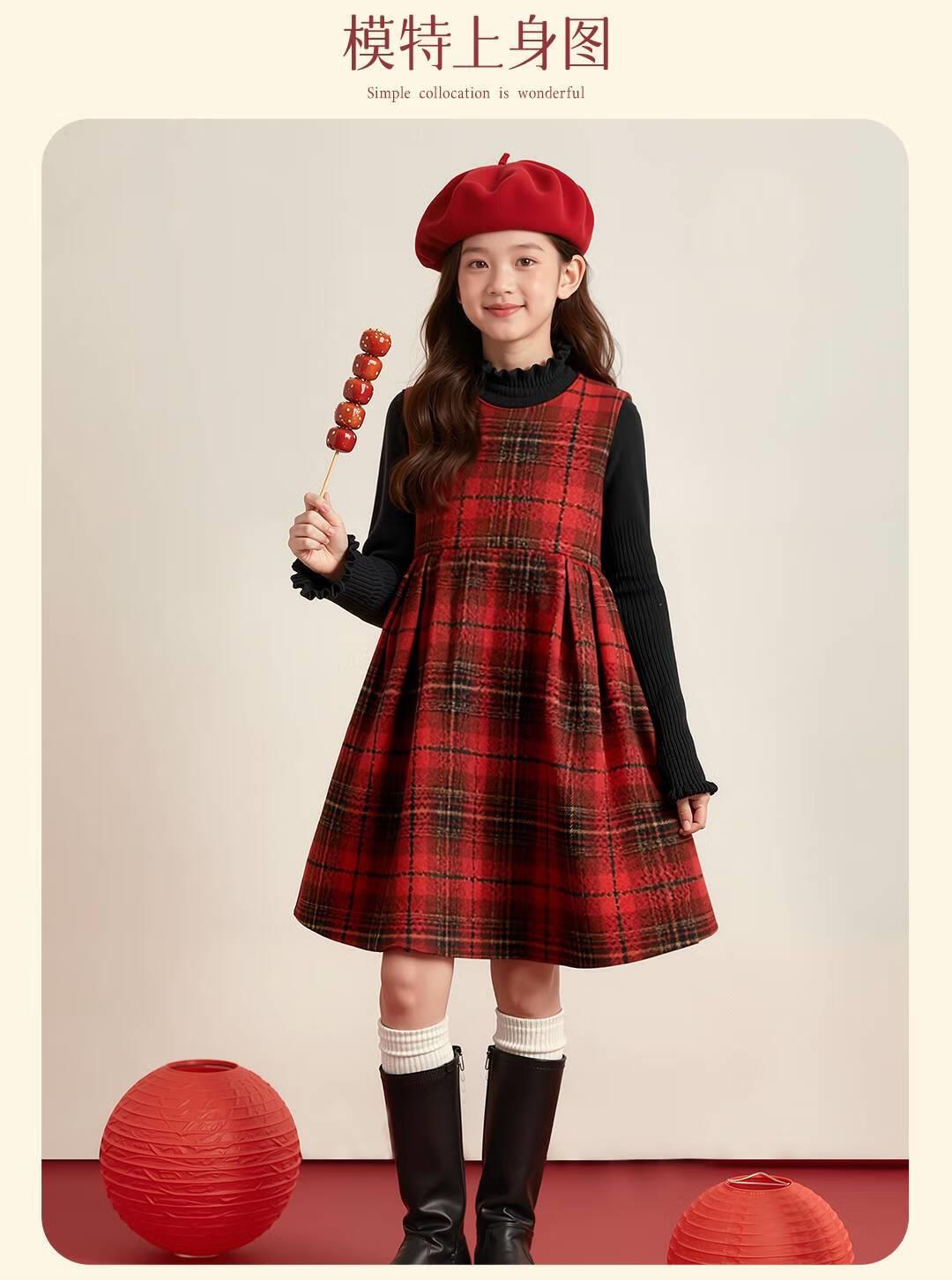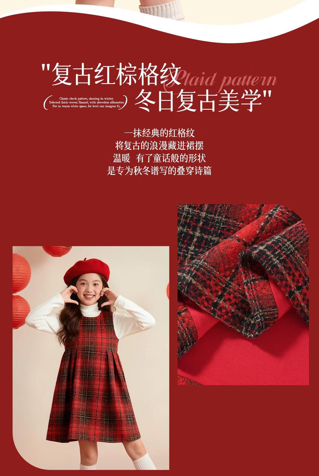 女童红色连衣裙秋冬款小公主2026新年高级复古毛衣背心裙两件套潮