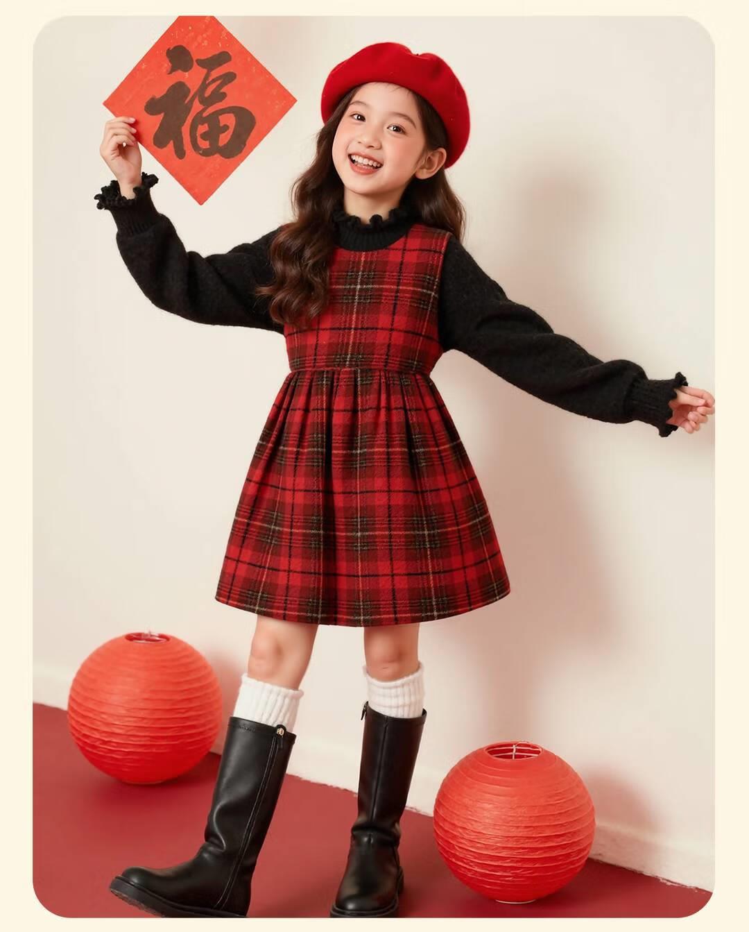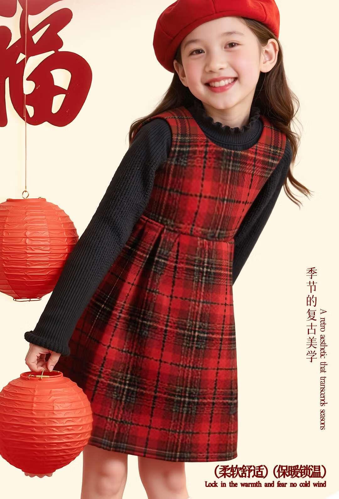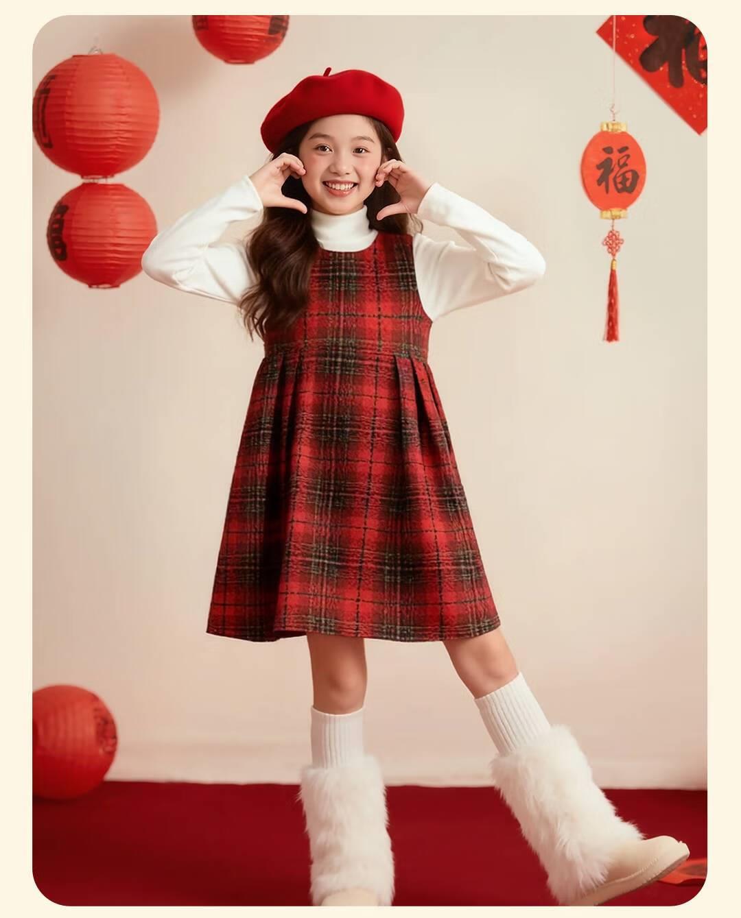 女童红色连衣裙秋冬款小公主2026新年高级复古毛衣背心裙两件套潮