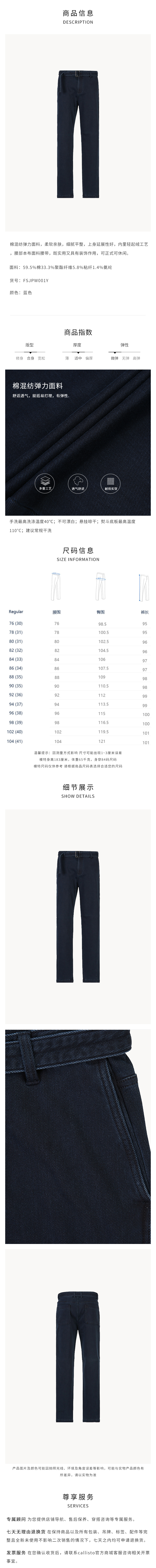 callisto蓝色棉混纺弹力牛仔裤 FSJPW001Y BL