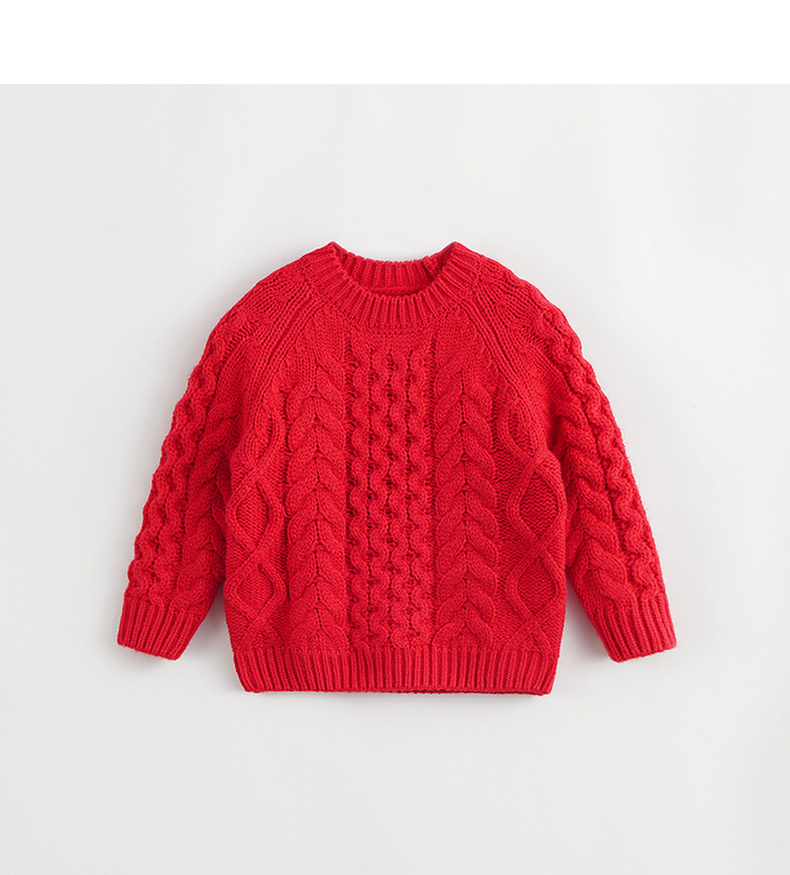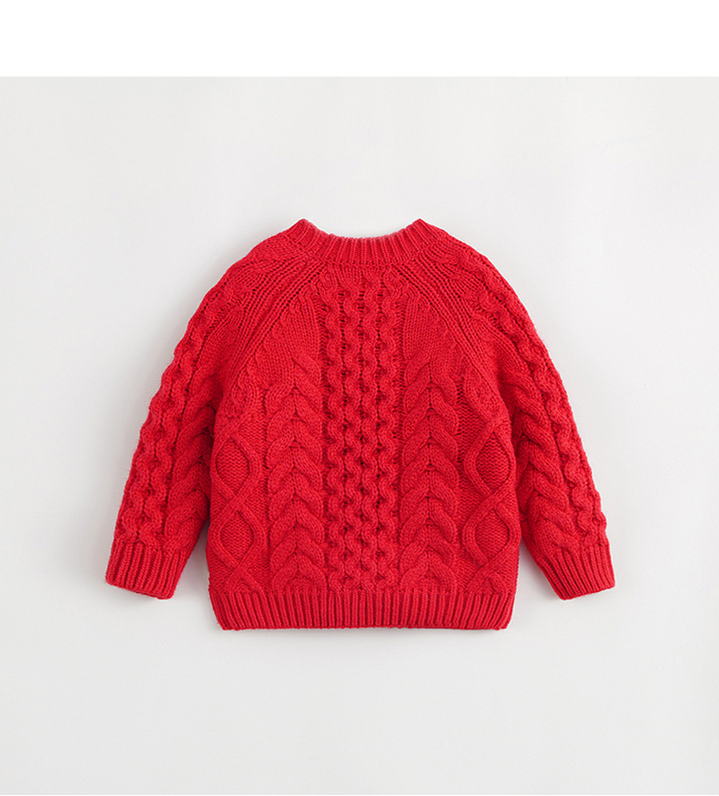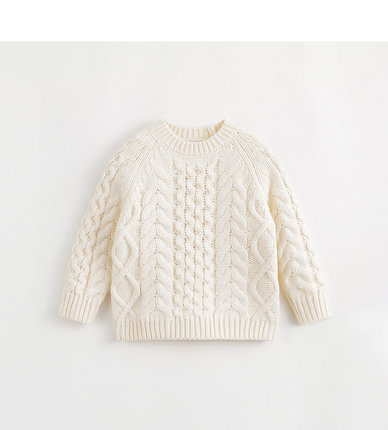 马克珍妮秋冬新款 男女童复古休闲宽松圆领绞花毛衣231313