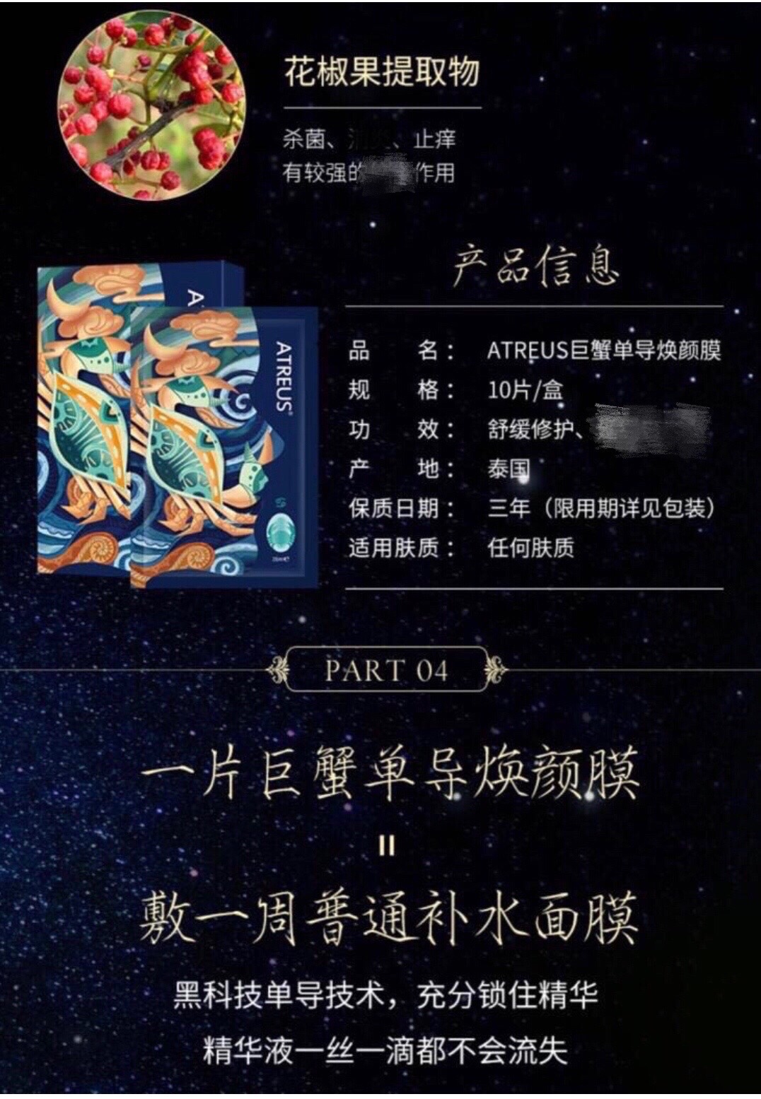 MMT 泰国atreus12星座巨蟹单导焕颜膜 修复保湿 补水面膜10片