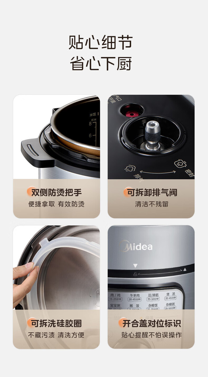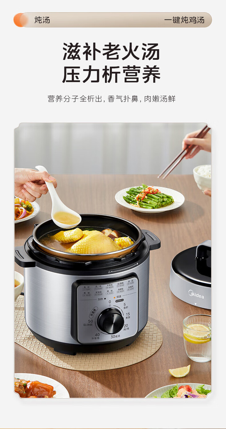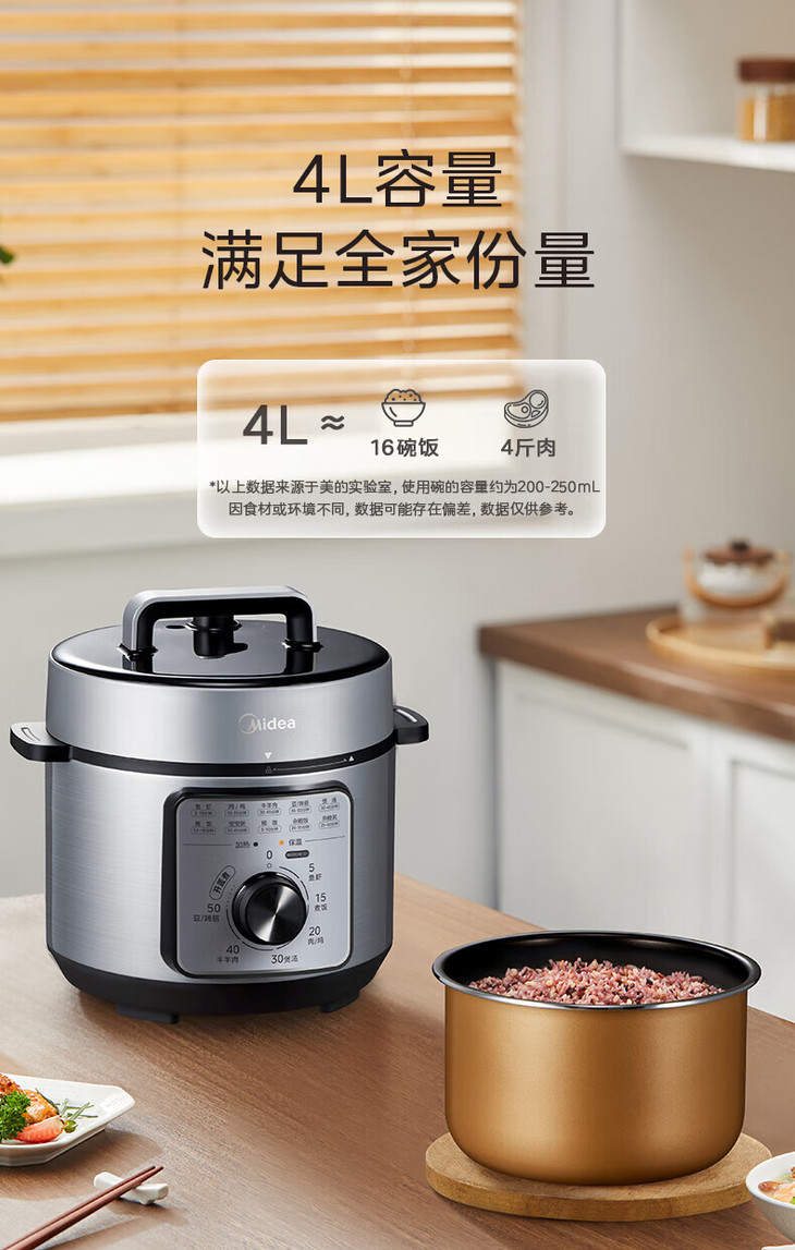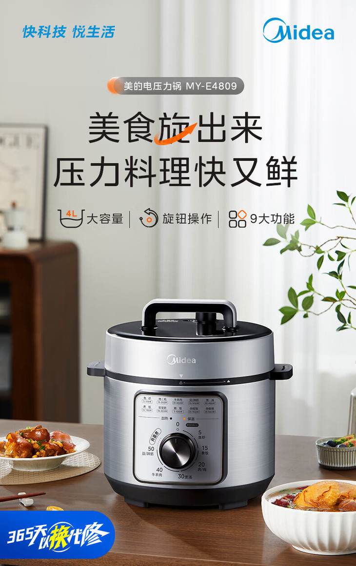 美的(Midea)(510477) 电压力锅 高压锅家用高压电压力煲智能预约电饭煲大容量多功能定时预约电饭煲电饭锅3-4-5-8人 单胆旋钮款 4L MY-E4809