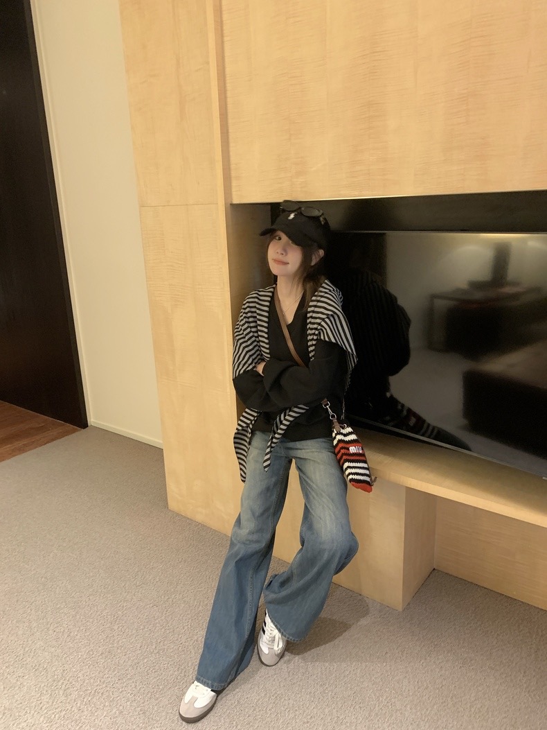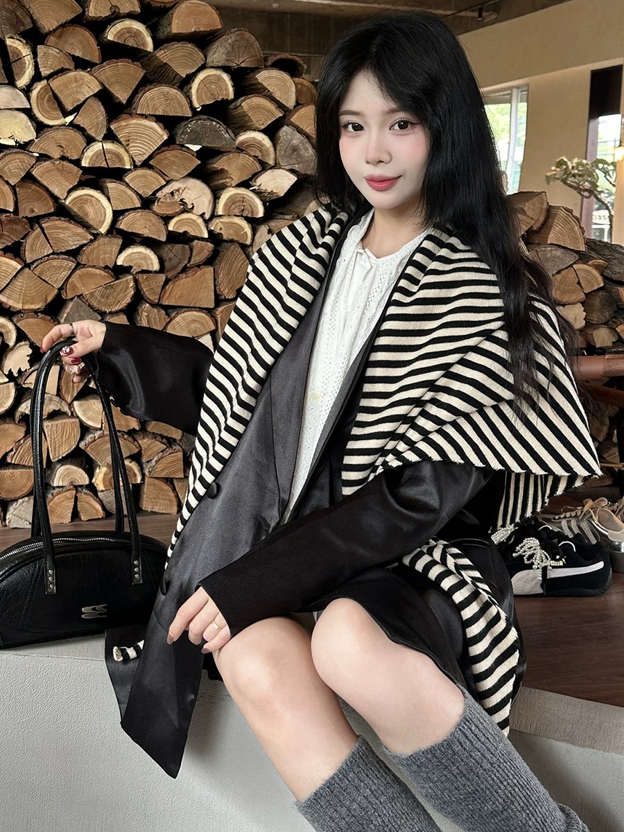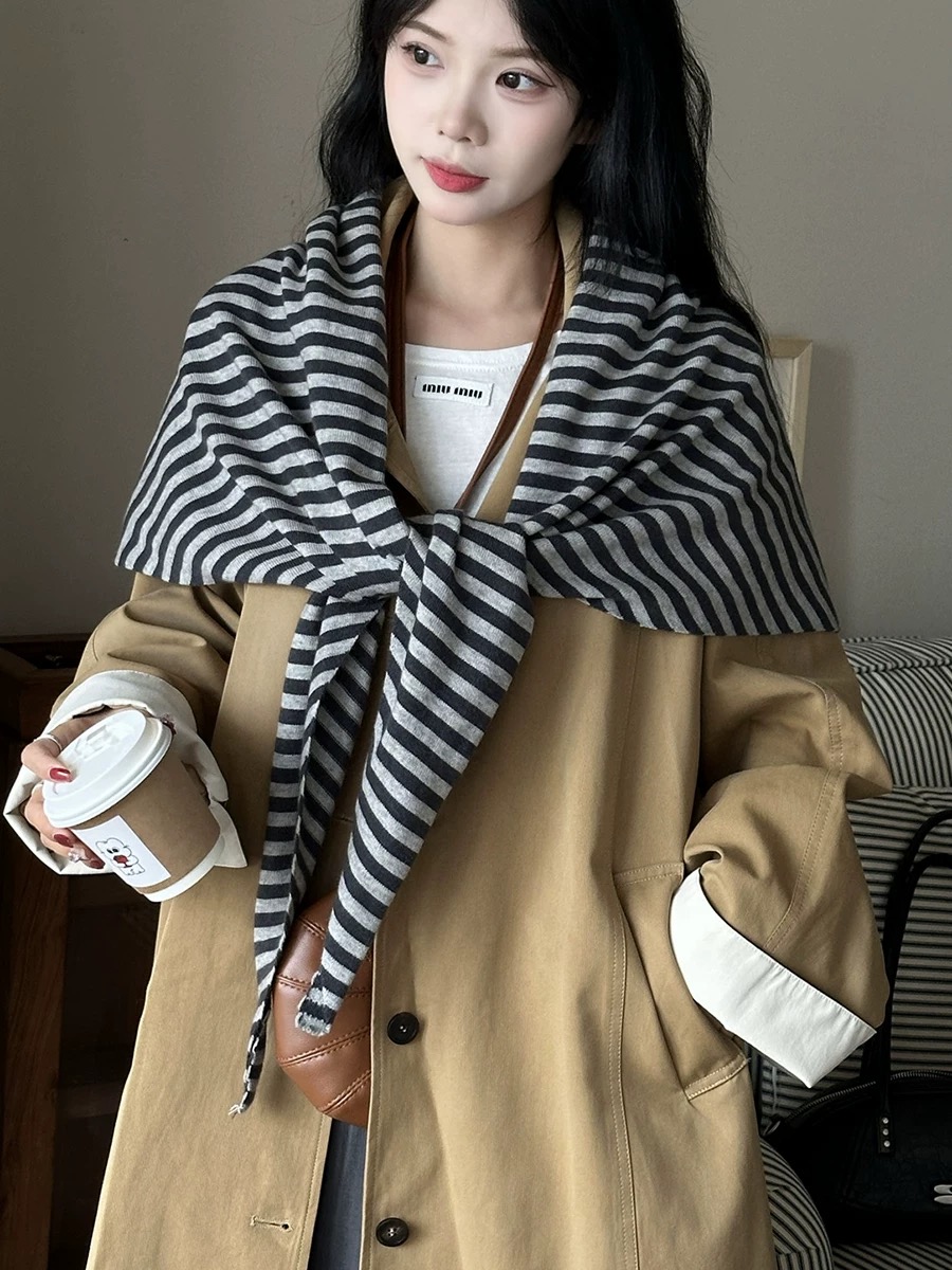 【YW】无忧购韩系慵懒简约条纹外搭针织三角披肩(截单后7天发货)25年清仓捡漏25年清仓捡漏