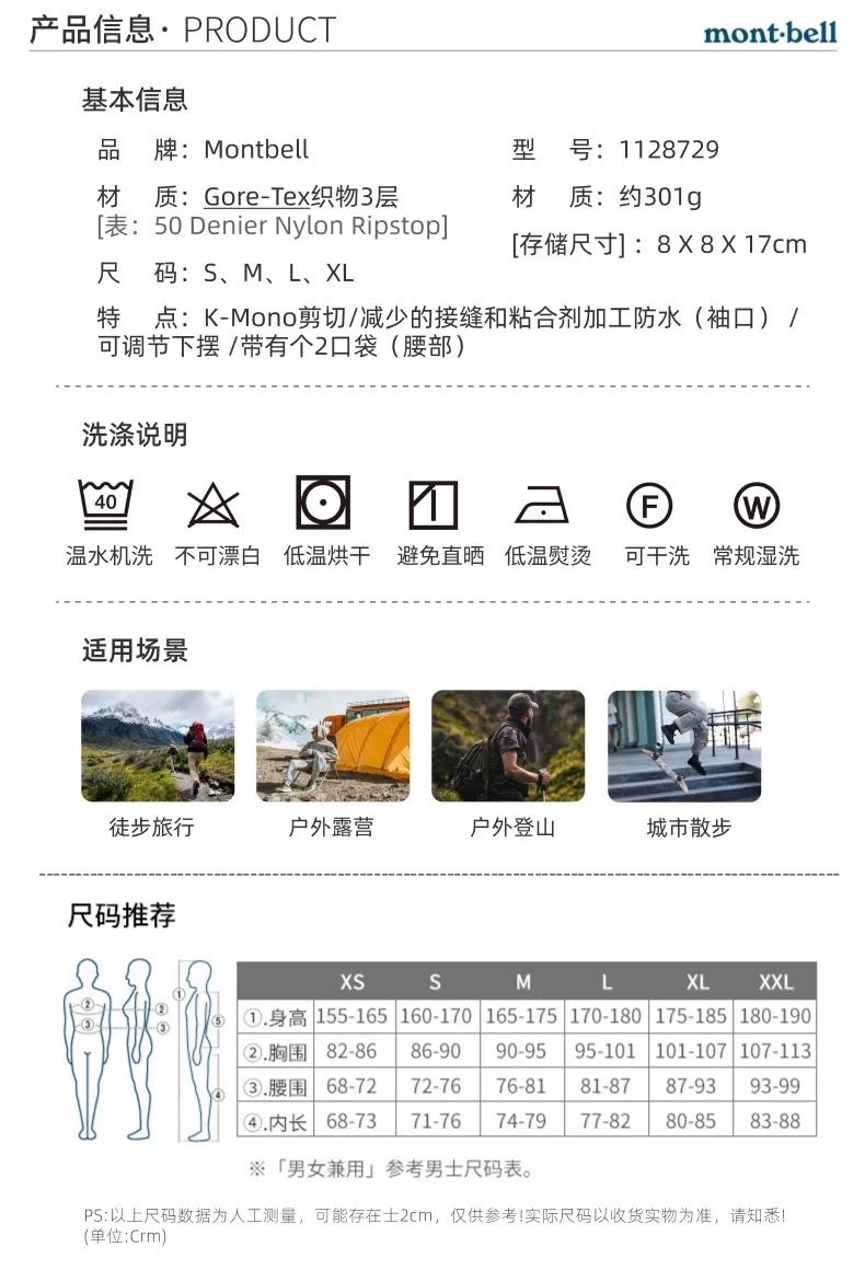 【实体店现货】montbell雨舞者GTX硬壳冲锋衣Rain dancer(tbzg)
