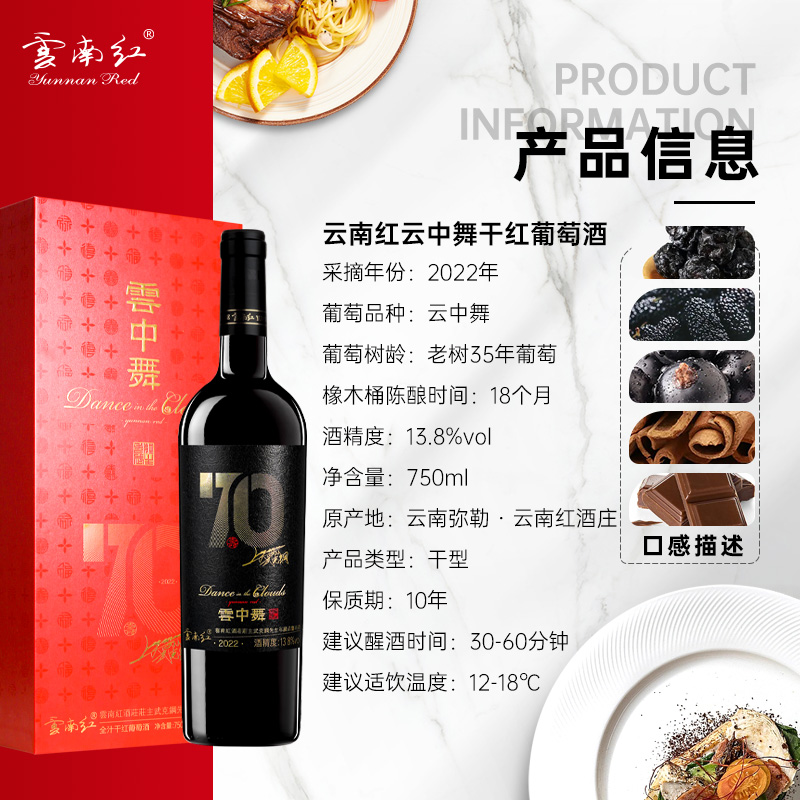 云南红酒庄70年云中舞13.8度750ml高端送礼款