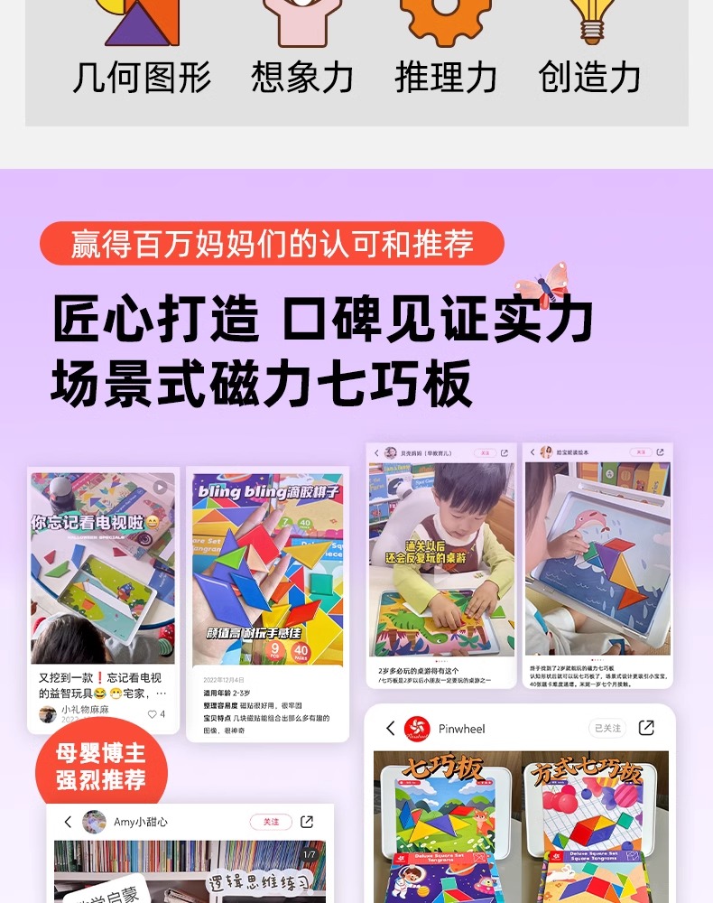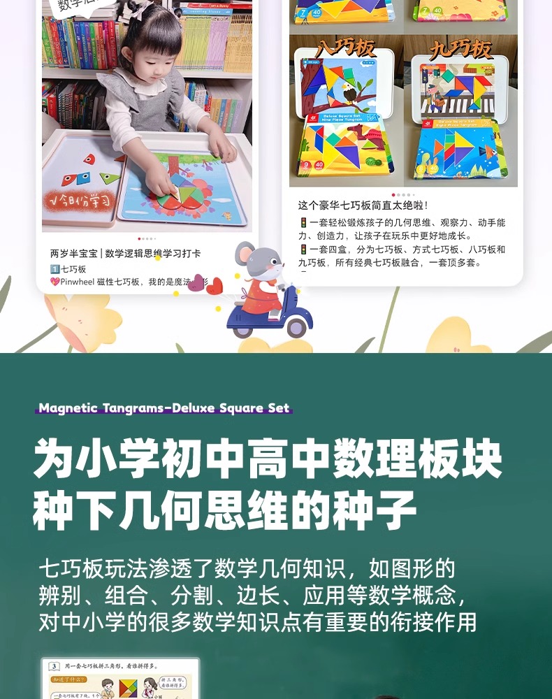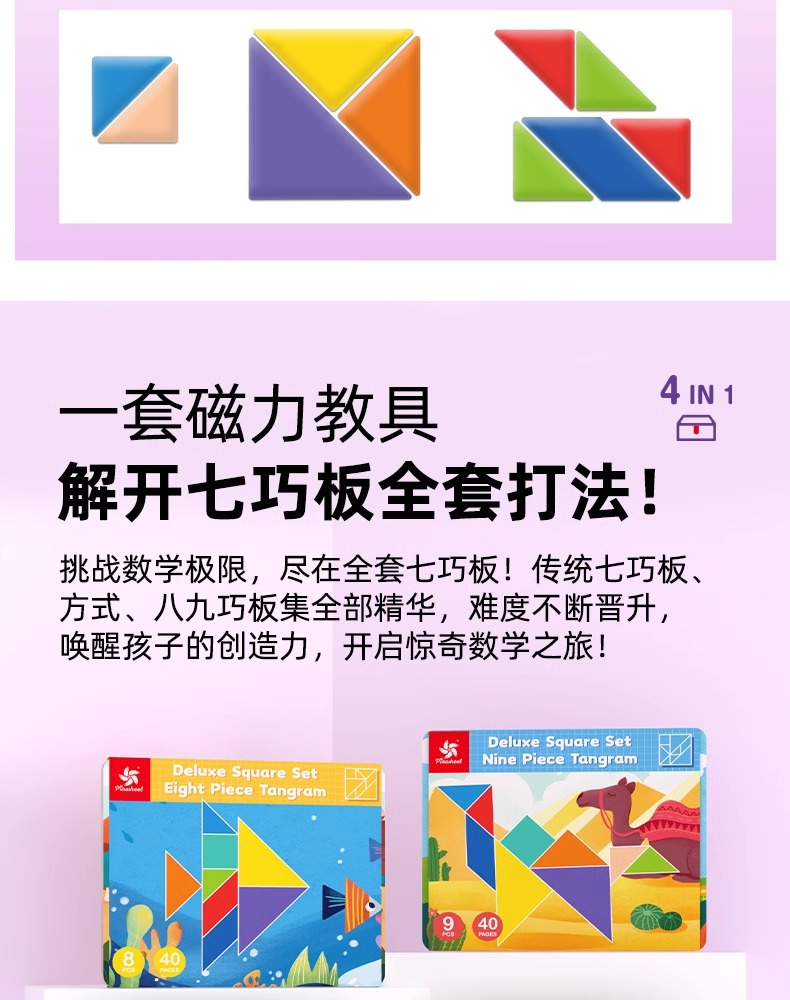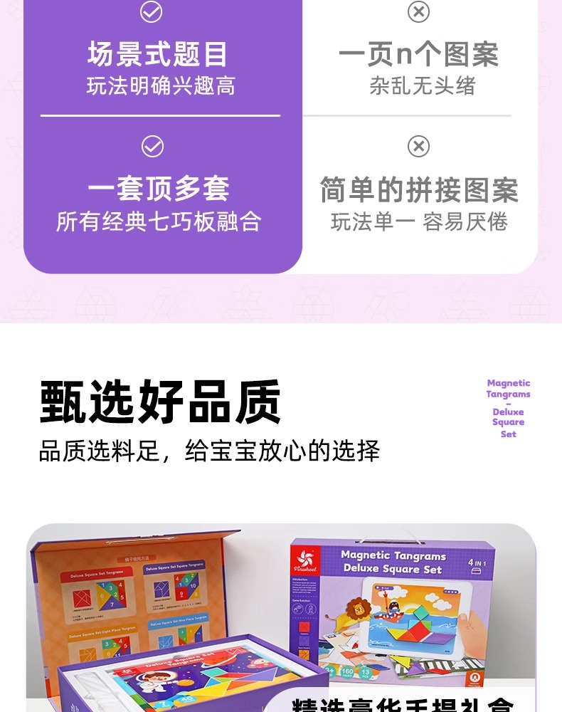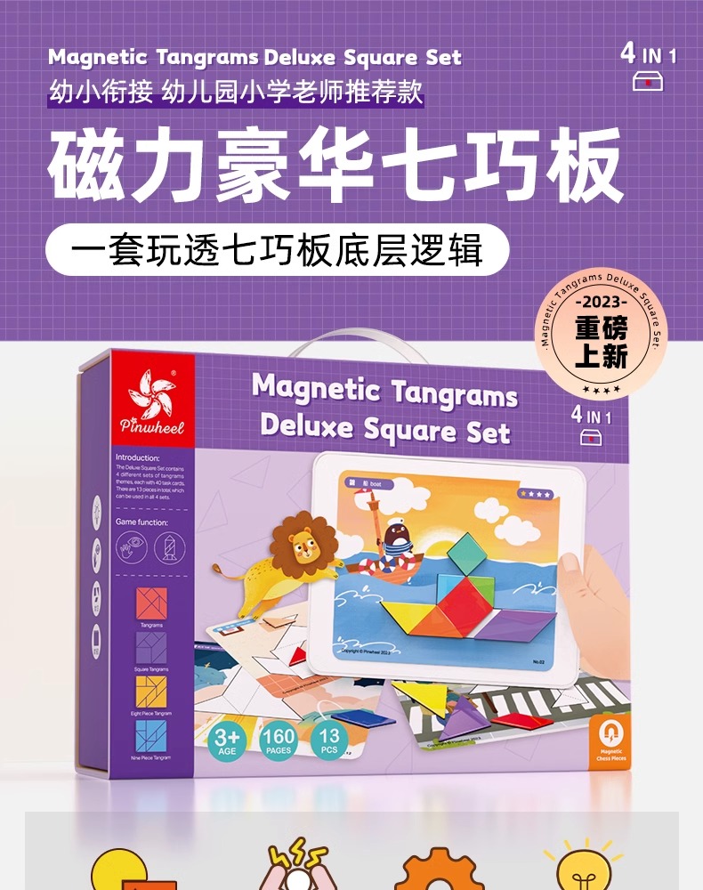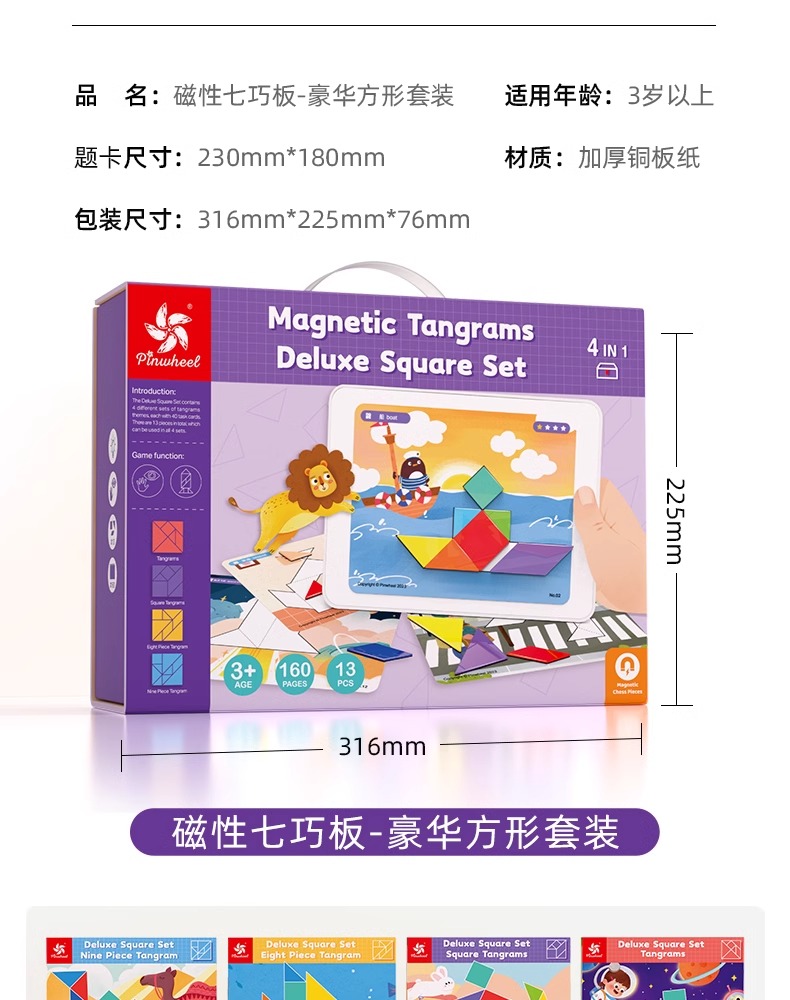 Pinwheel豪华版磁力七巧板智力几何拼图幼儿园专用益智玩具3到6岁