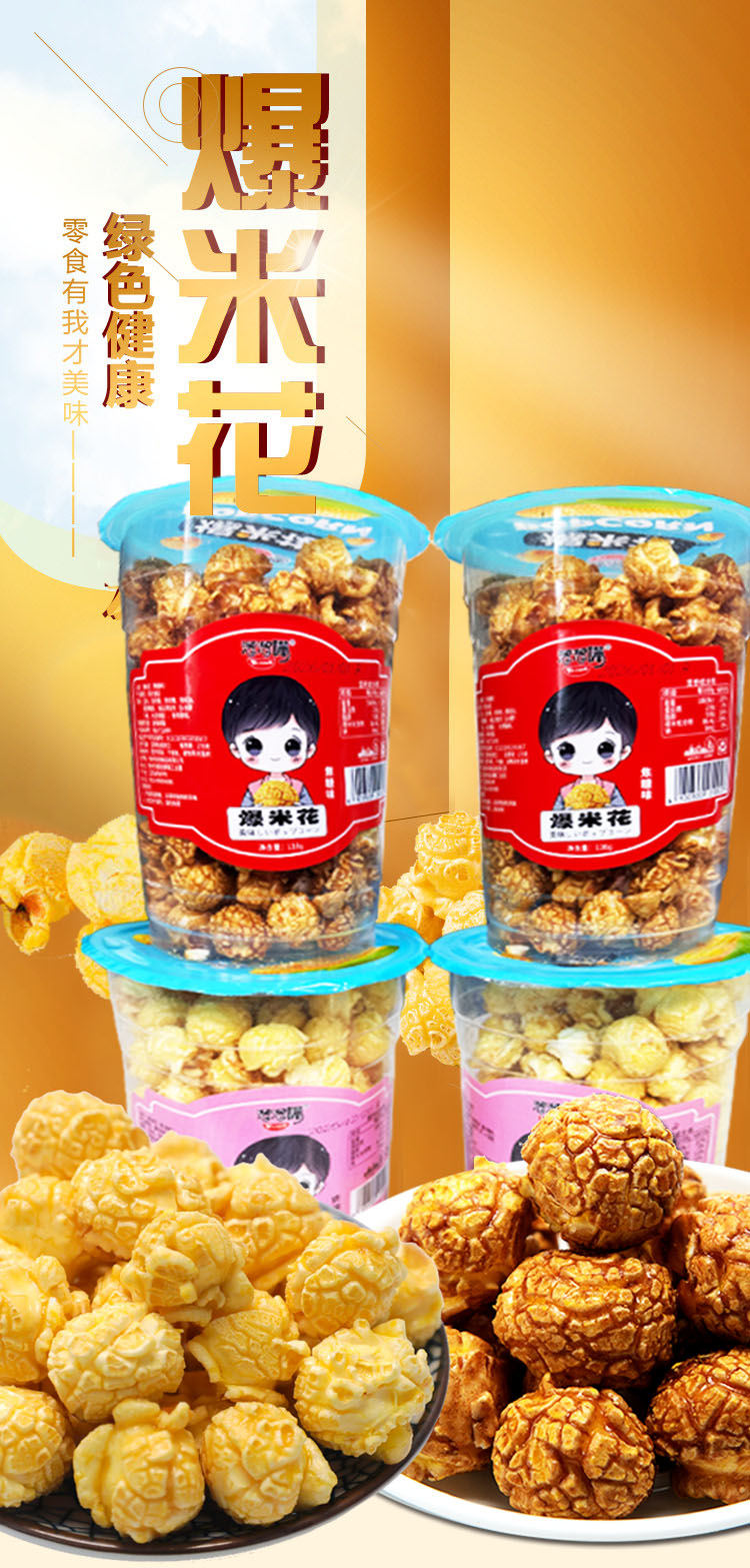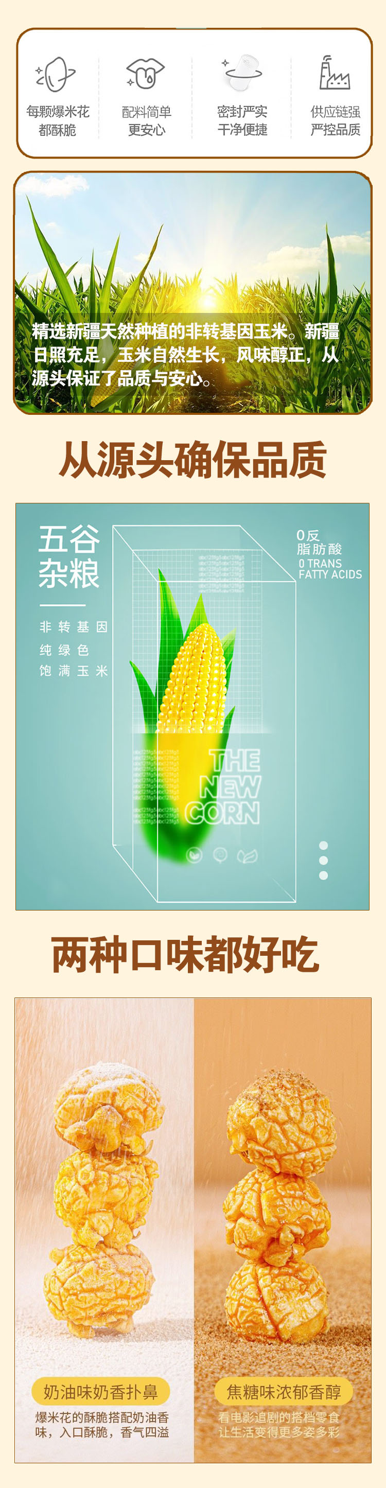 酥脆可口美味爆米花,18桶装(奶油 焦糖2种口味组合),精选新疆非转基因玉米,循环热风烘烤,酥脆易嚼,少油少糖少负担,童年记忆中的美味、老少皆宜M