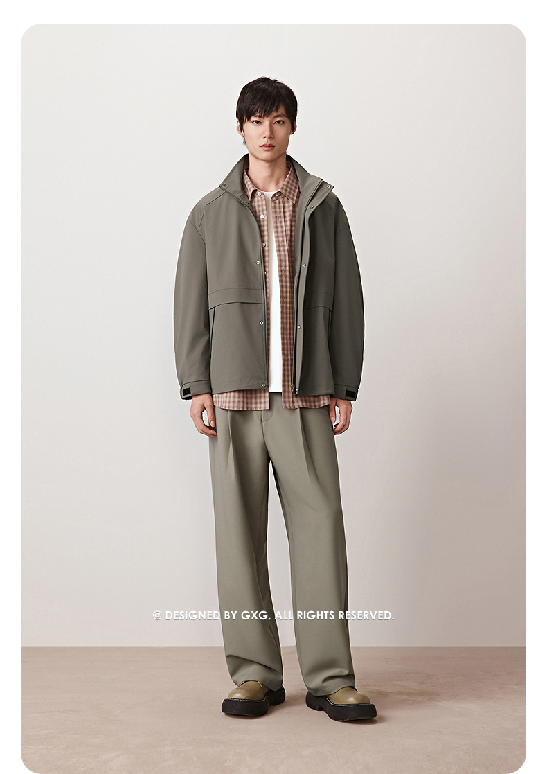 GXG男装 立领通勤行政夹克肌理拼接宽松茄克男士外套2025秋季热卖