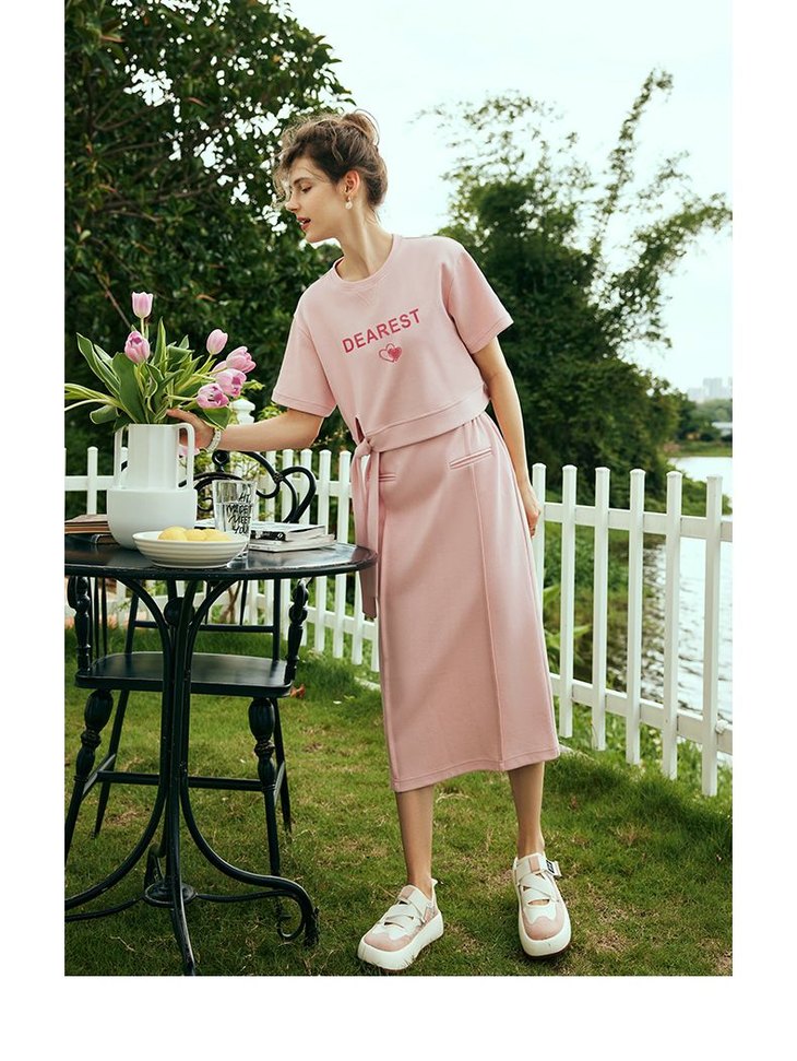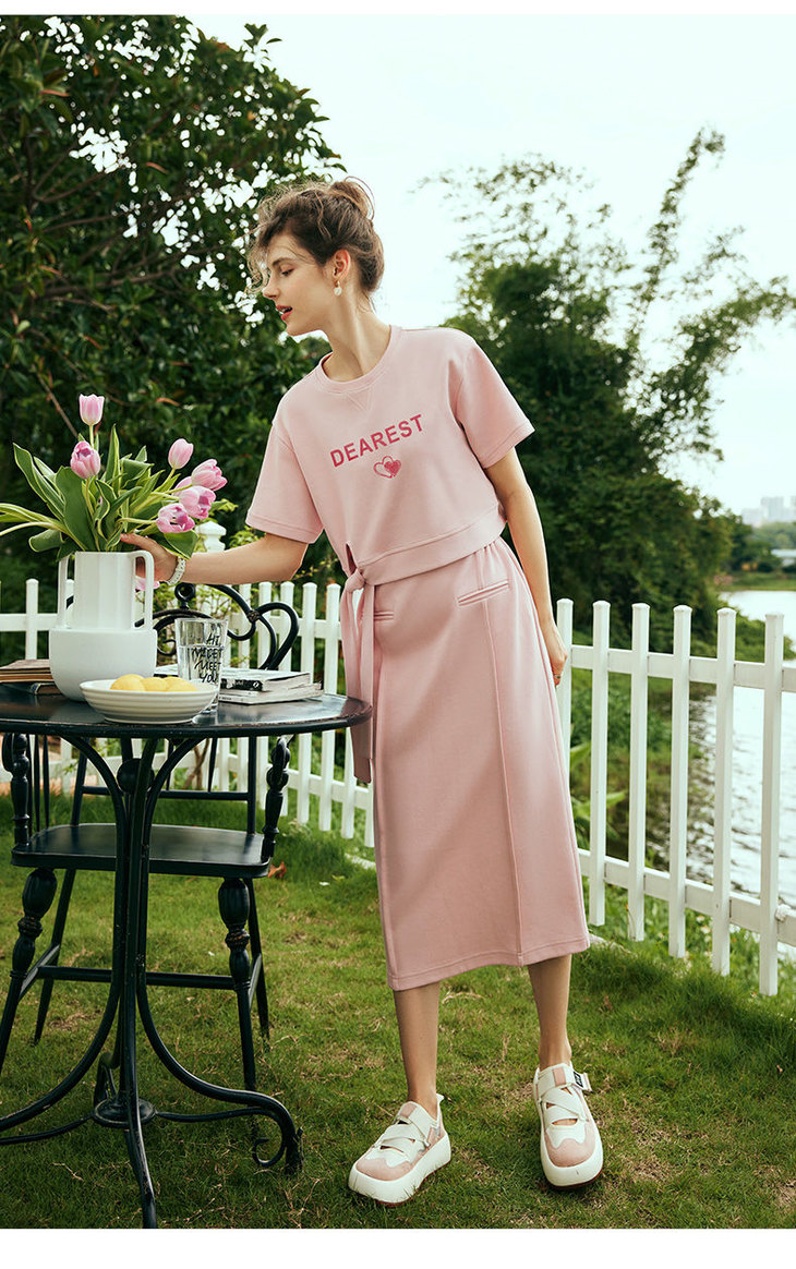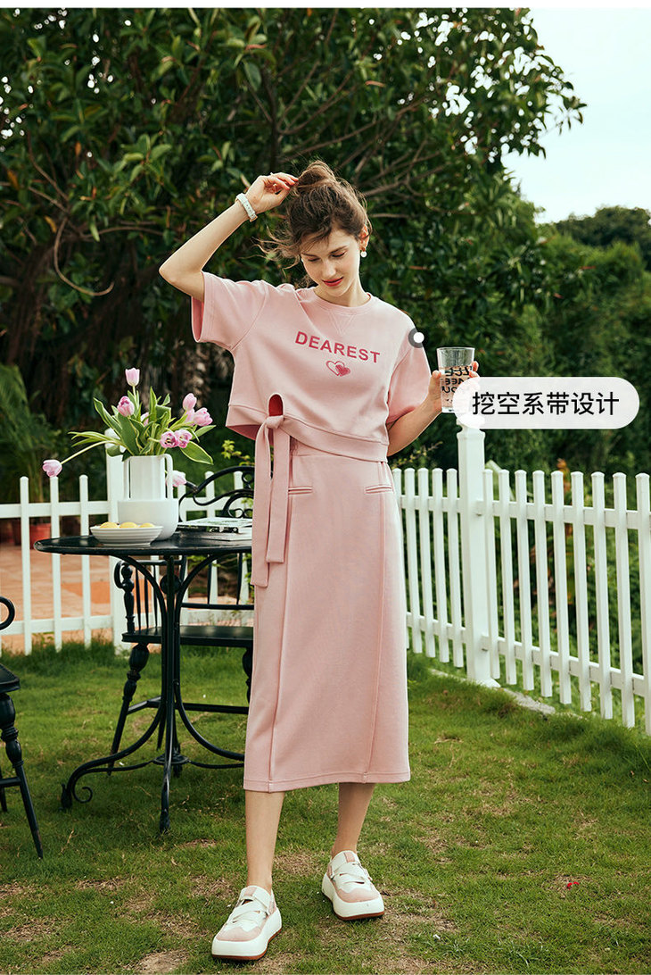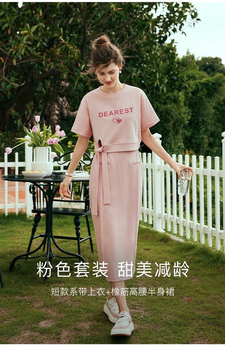 OLrain欧芮儿法式粉色时尚套装女夏季2023新款甜美减龄裙子两件套