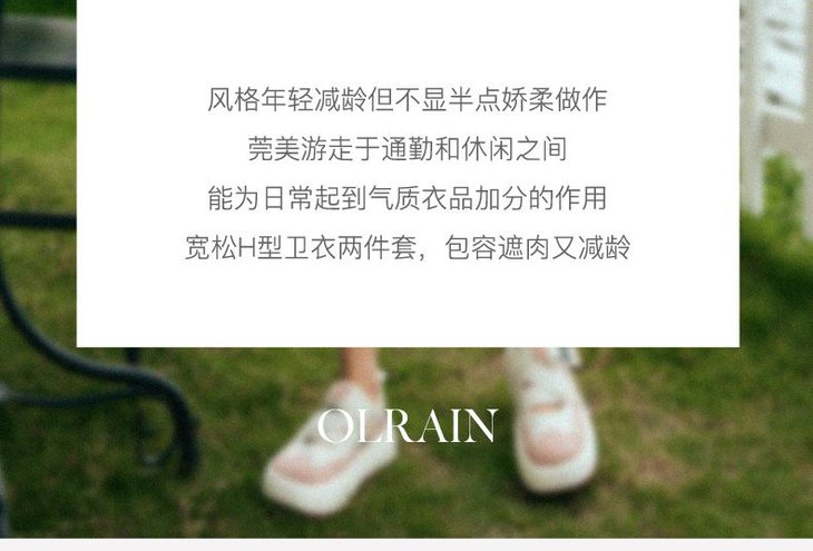 - “精致”是欧芮儿olrain品牌文化的核心,欧芮儿认为,精致的女人,不但要外在动人,更要内在迷人,内外兼修,有魅力、有气质、有内涵,自信而不自傲,优雅而不矫揉,自有万种风情而不轻浮,更不故作矜持。