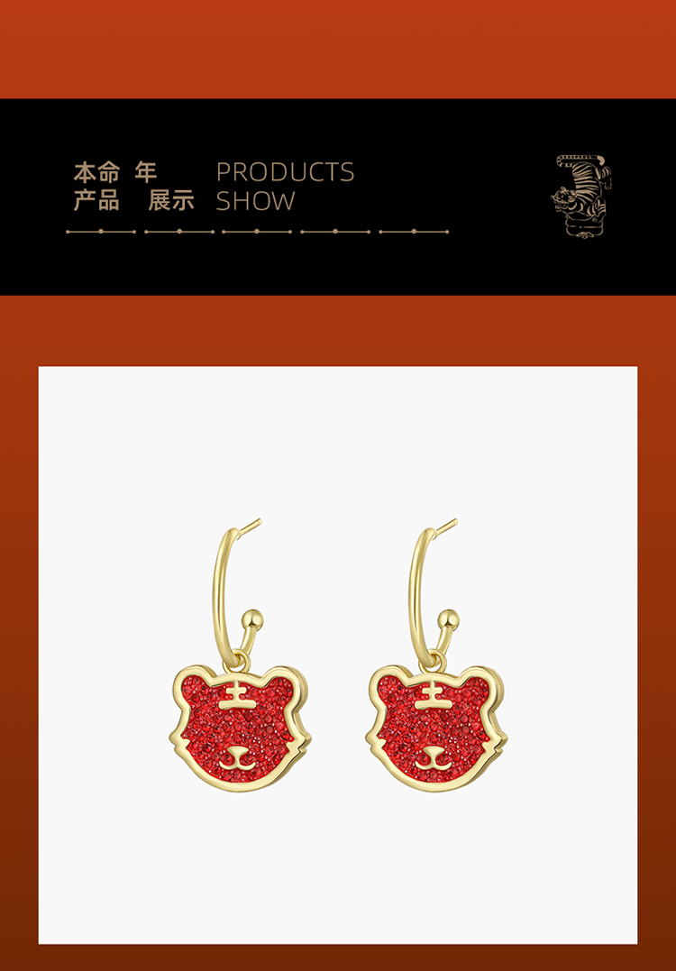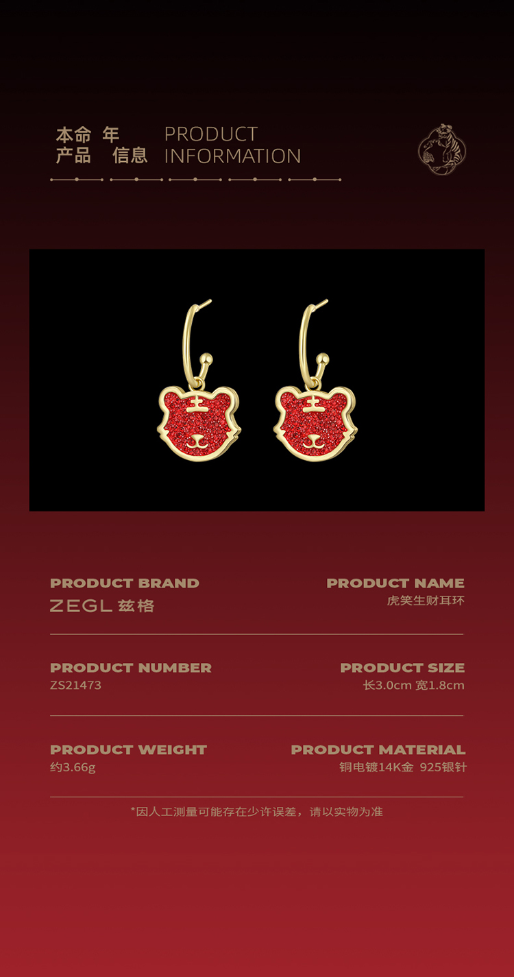 ZEGL设计师虎年本命年礼物虎笑生财耳环女轻奢高级感耳钉银针耳饰