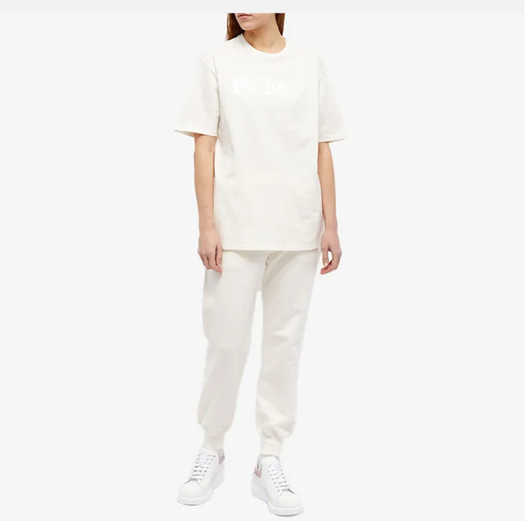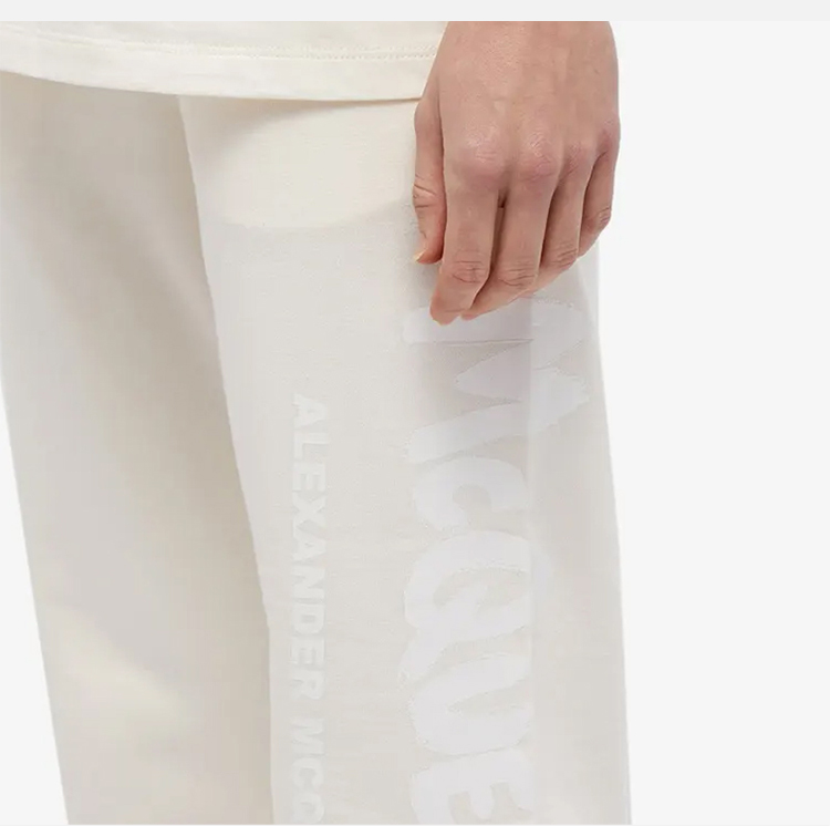 ALEXANDER MCQUEEN 亚历山大.麦昆 女士棉质字母徽标涂鸦印花休闲运动裤 米白色 687037 QZAHR 0954