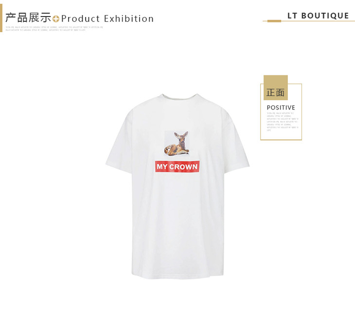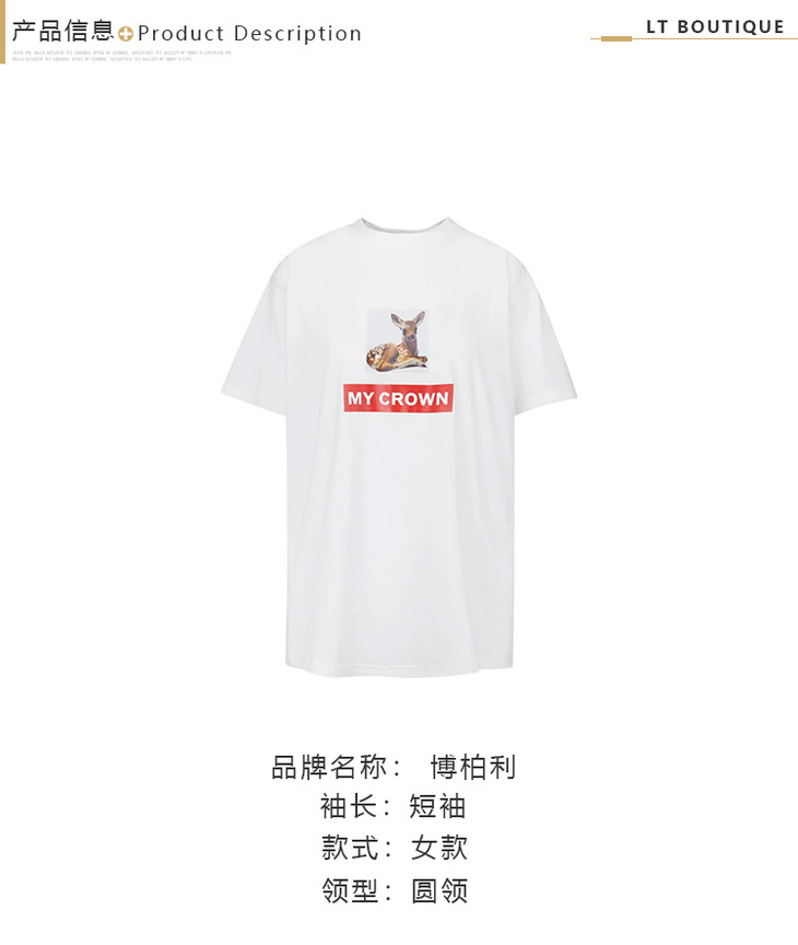 【一】BURBERRY 博柏利 春夏新款 明星同款女士短袖T恤 MY CROWN小鹿斑比印花纯棉圆领Tee 8013664 A1464