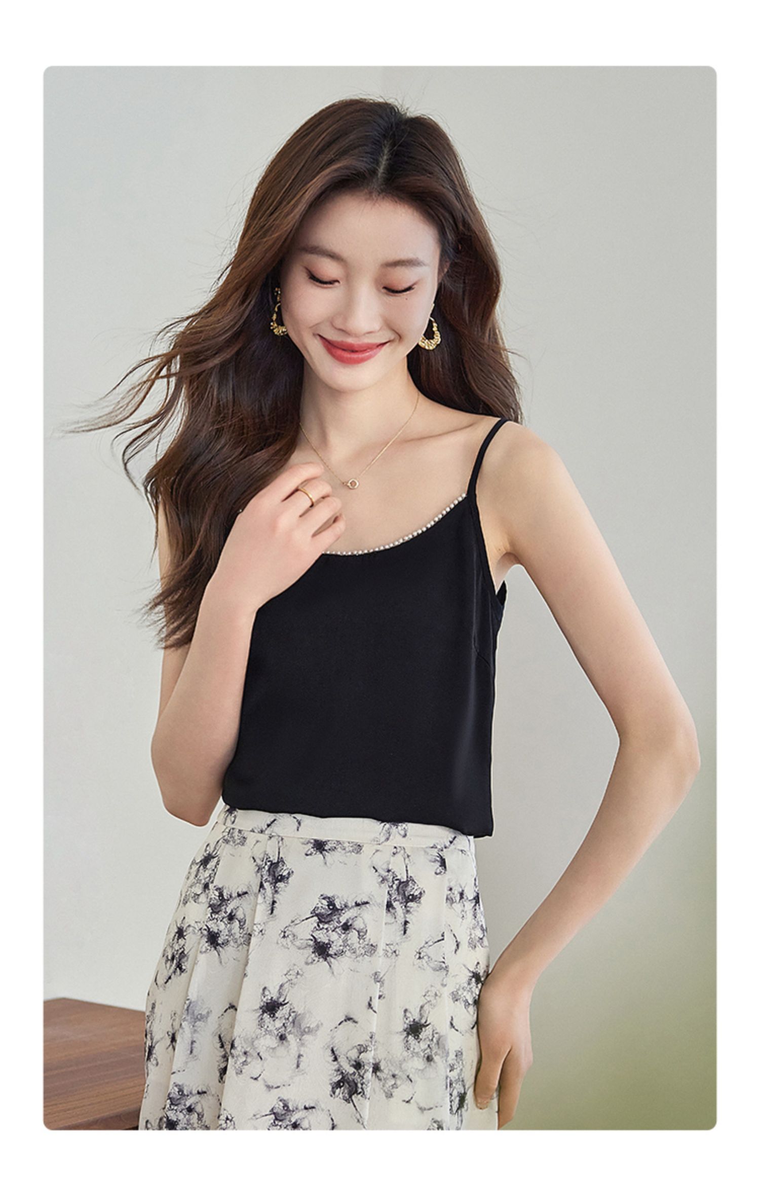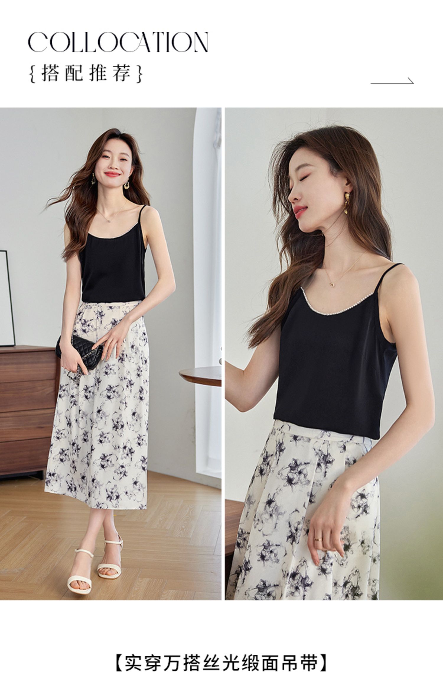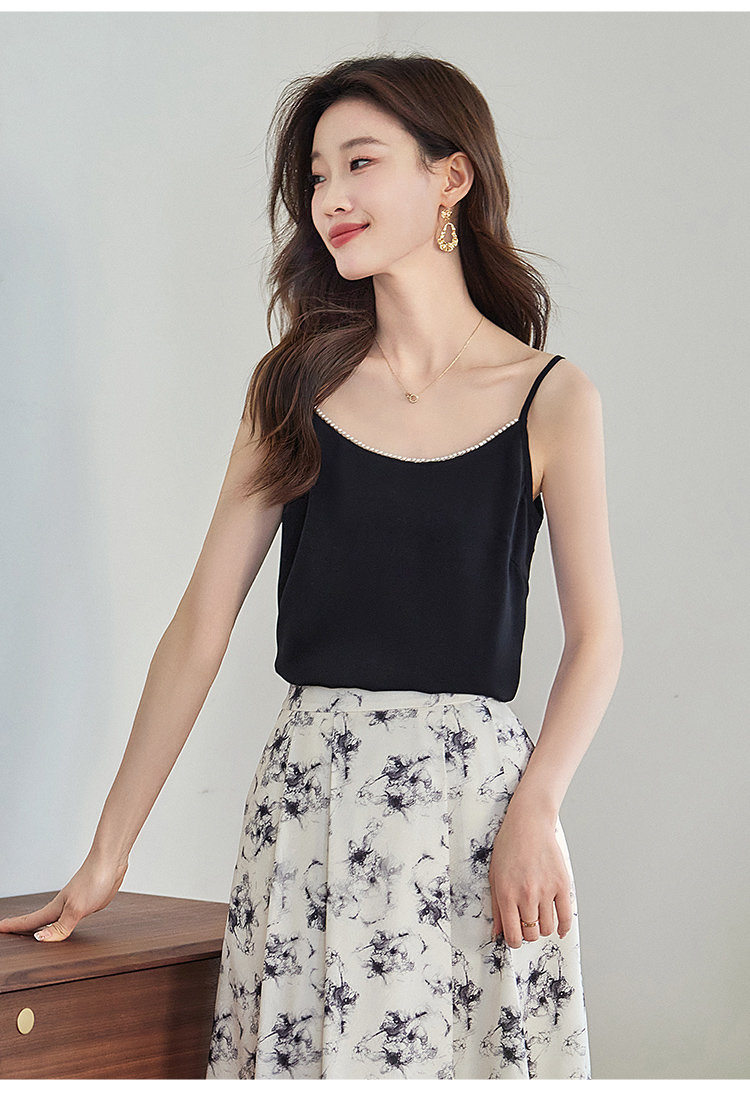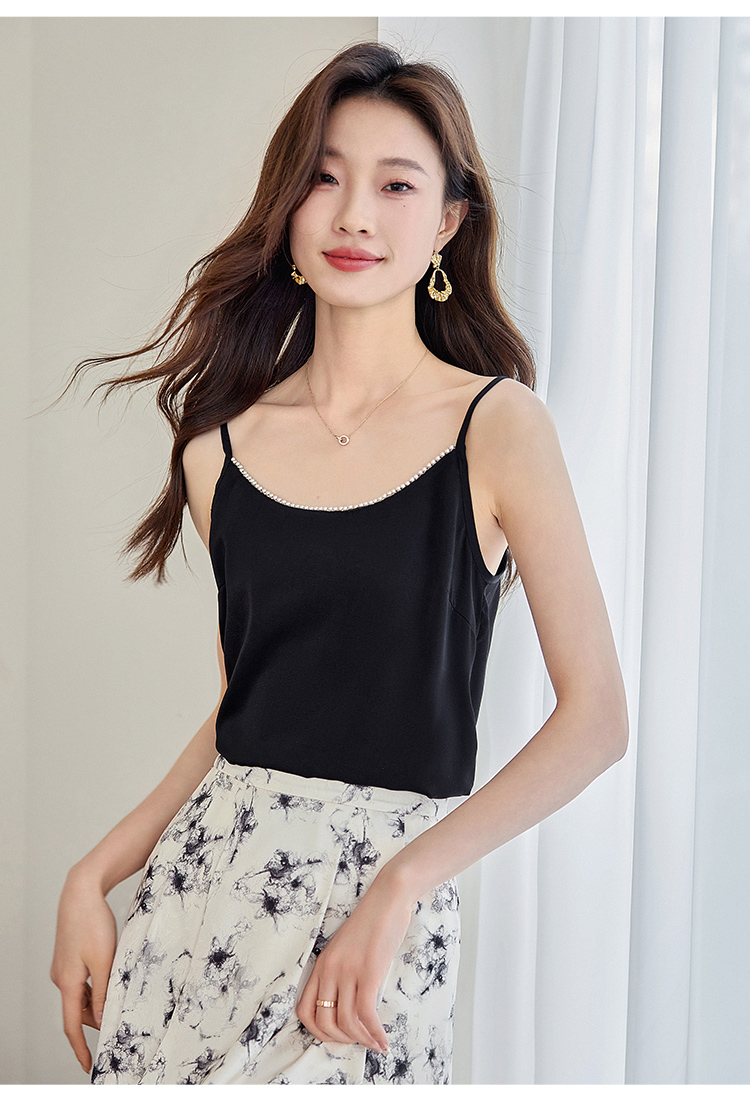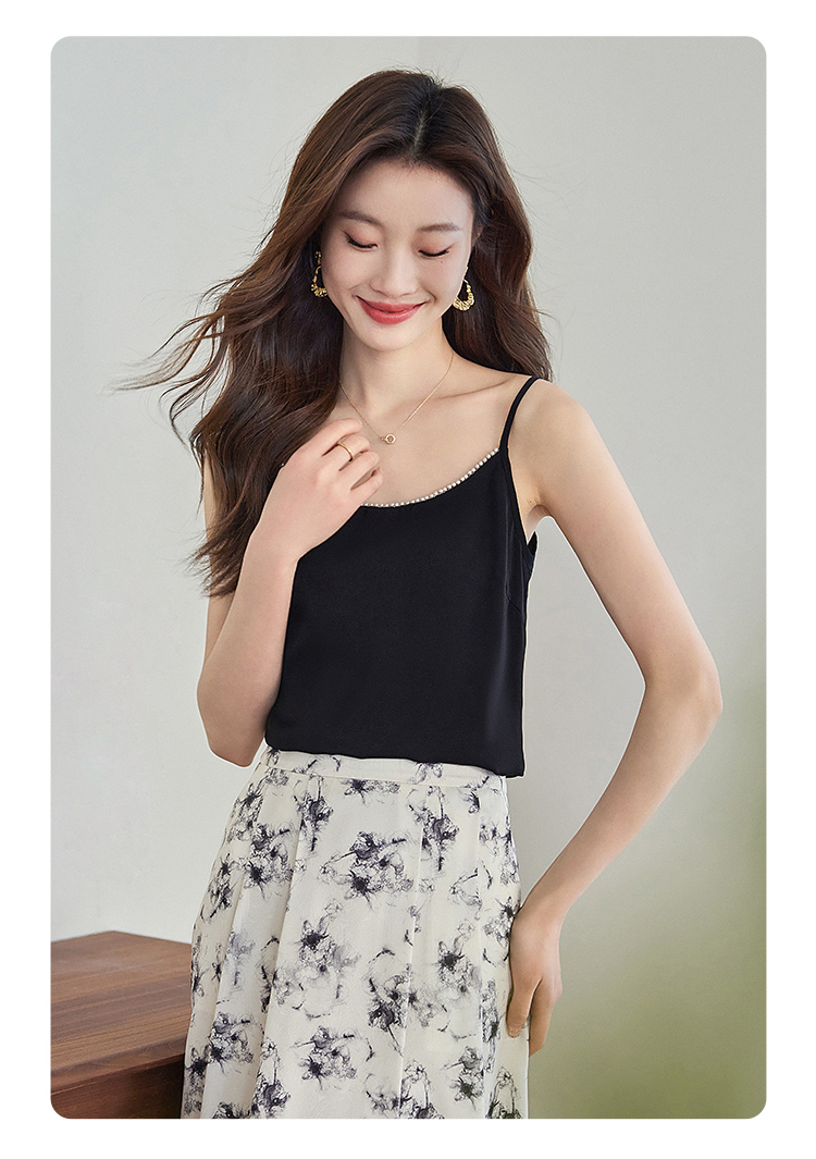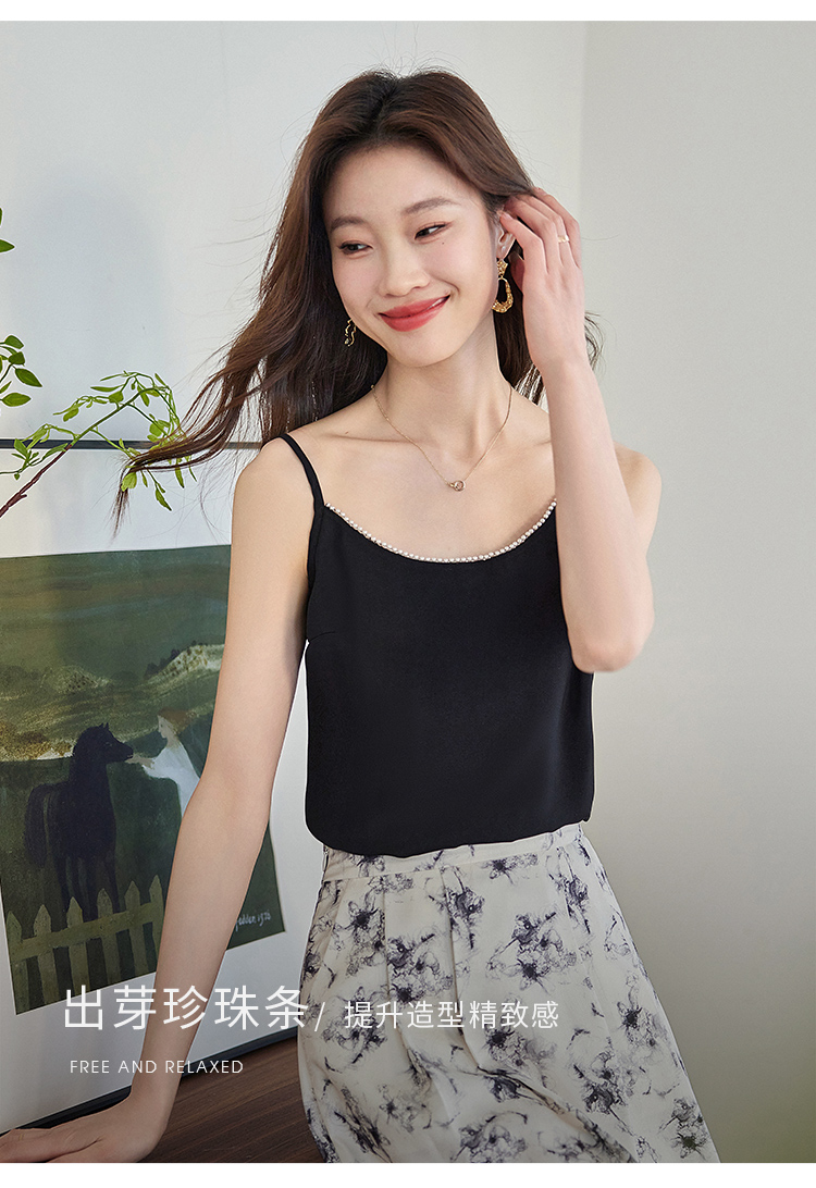 【专属特价】熙世界丝光缎面吊带小背心女2025夏新款黑色内搭打底衫外穿上衣