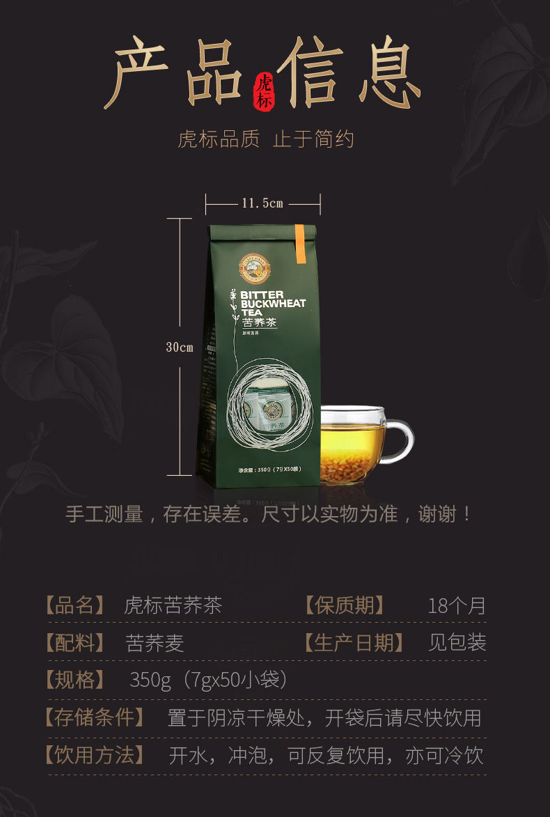 中国香港品牌 虎标 茶叶 养生茶 苦荞茶 四川大凉山 全胚芽荞麦茶 小袋装 350g/袋