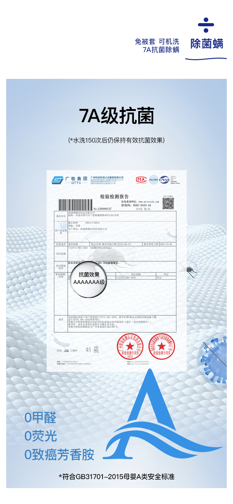 填充:上层100%棉; 下层100%聚酯纤维;