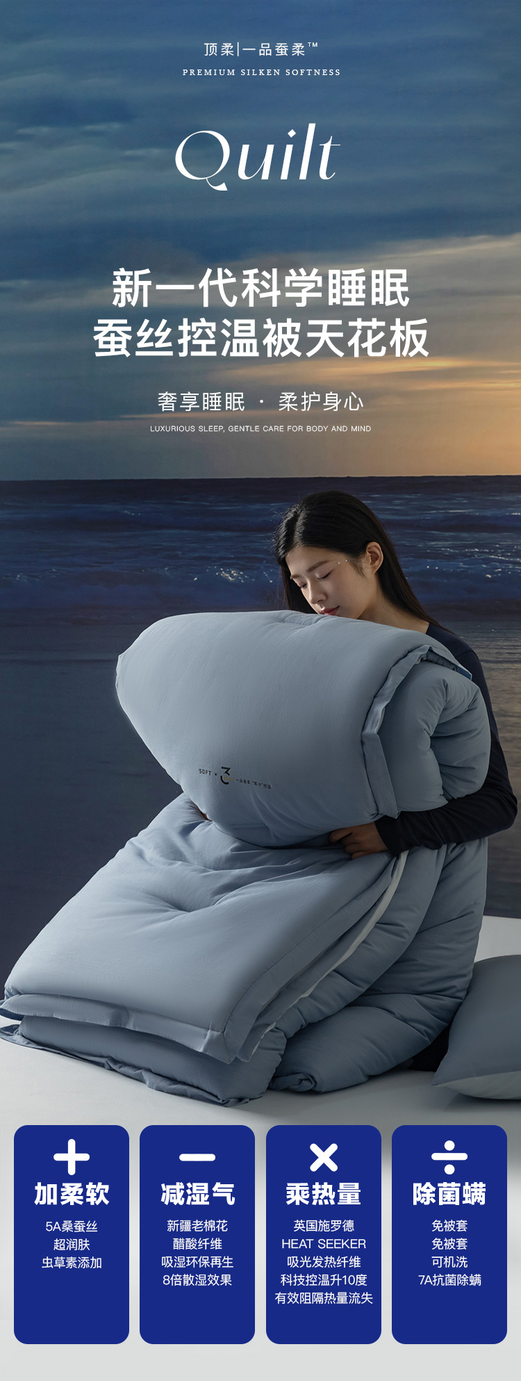 【品名】一品蚕柔可水洗二合一蚕丝控温被