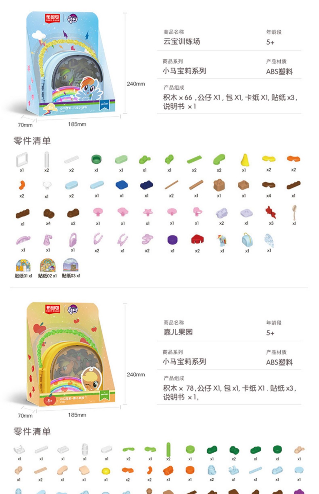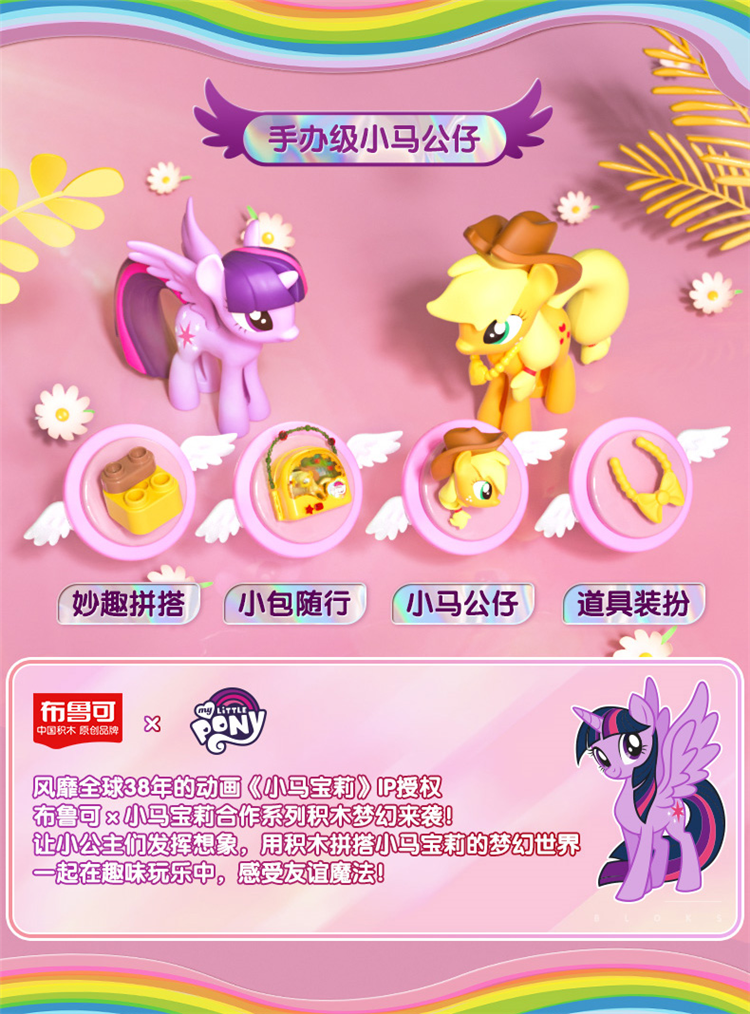 布鲁可小马宝莉魔法小包小颗粒积木手办公仔