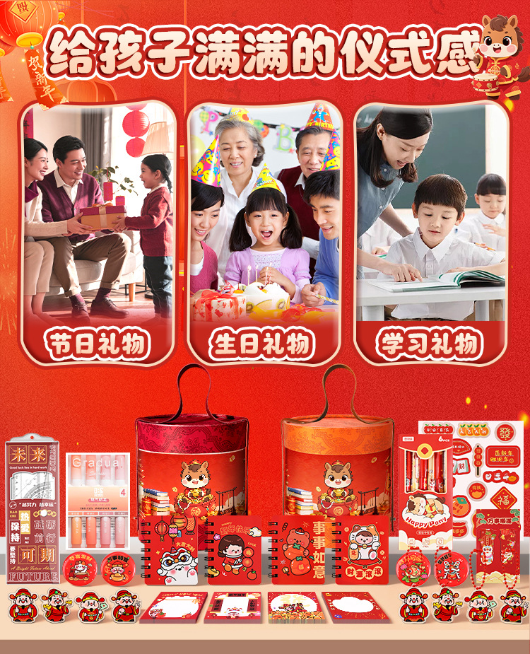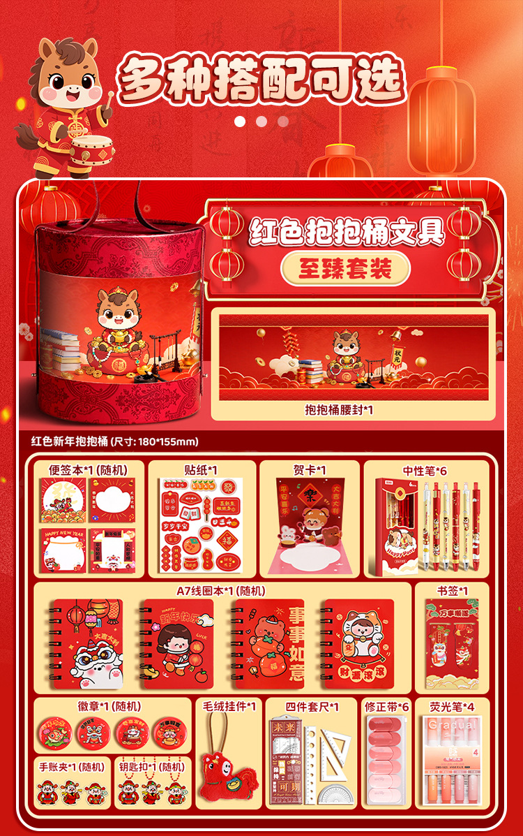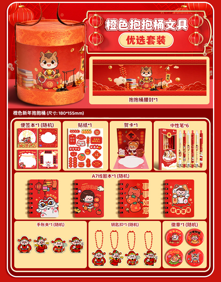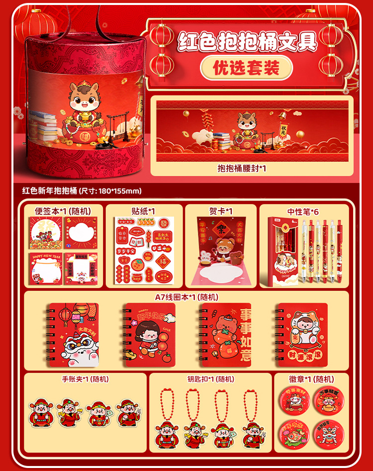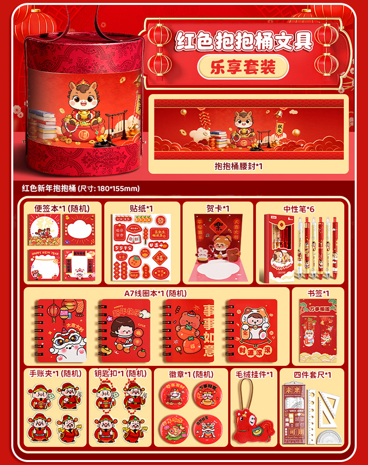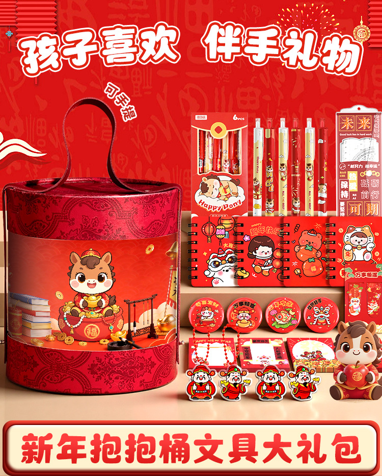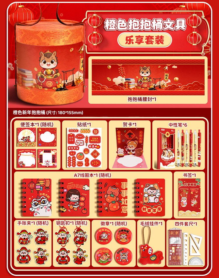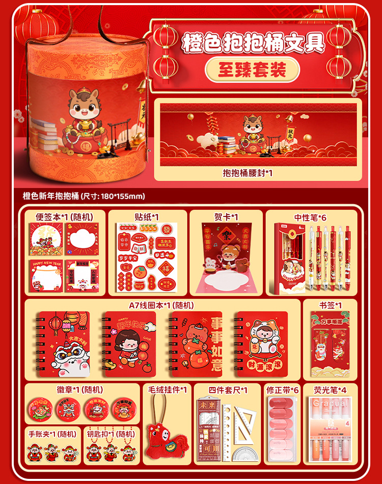 【新年!卡通文具抱抱桶】小学生文具套装 抱抱桶 儿童新年伴手礼 学习奖励小礼品 开学节日礼品 开学奖励品