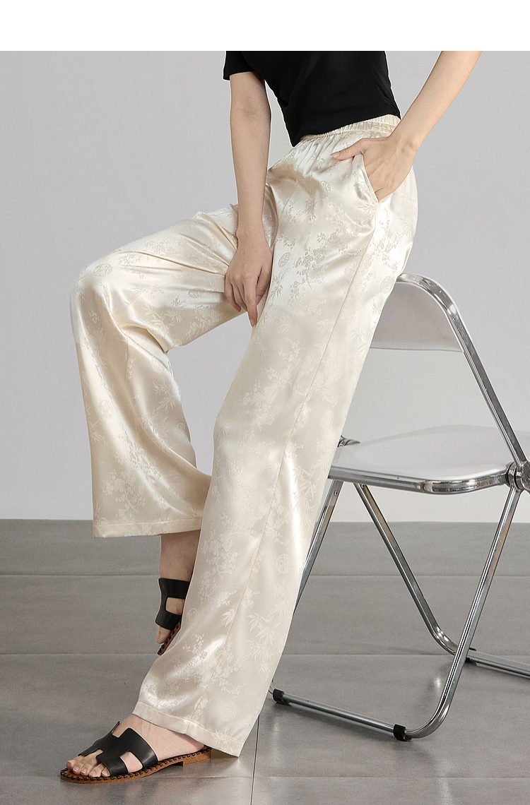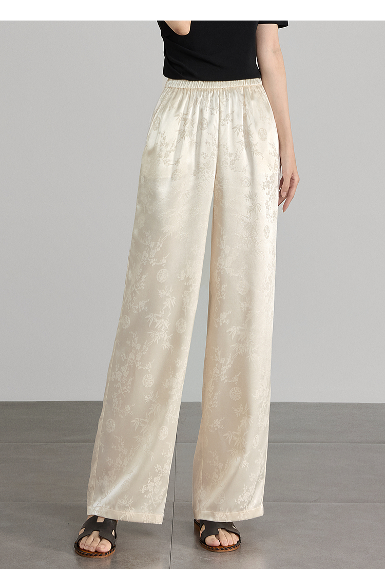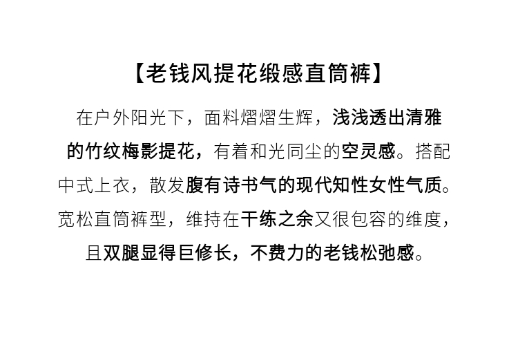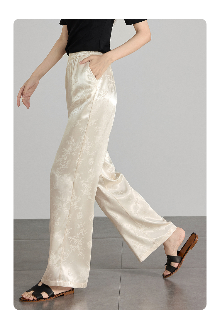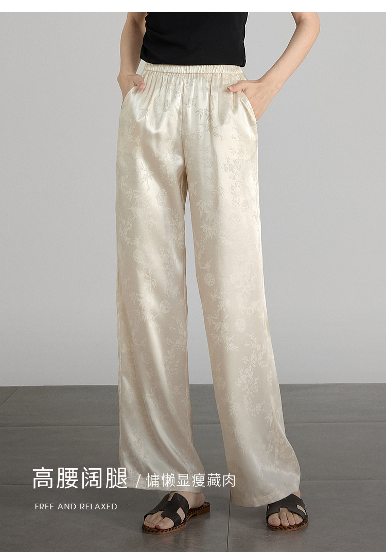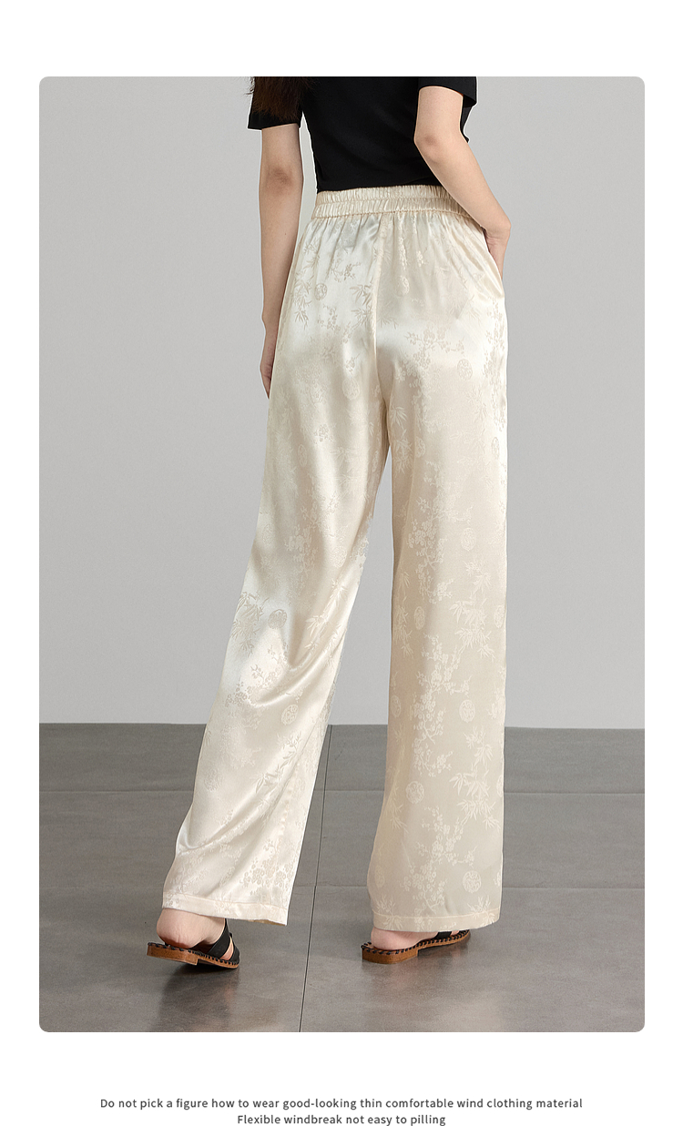 【专属特价】熙世界新中式国风提花阔腿裤夏薄款高腰宽松冰丝长裤缎面直筒裤