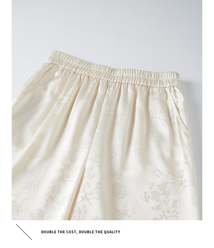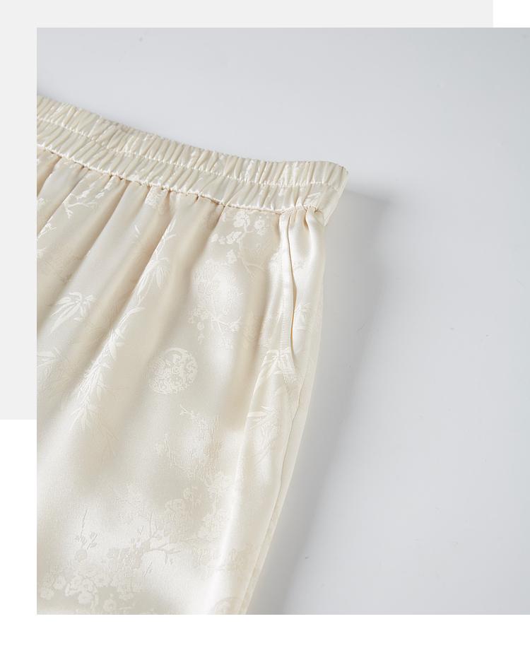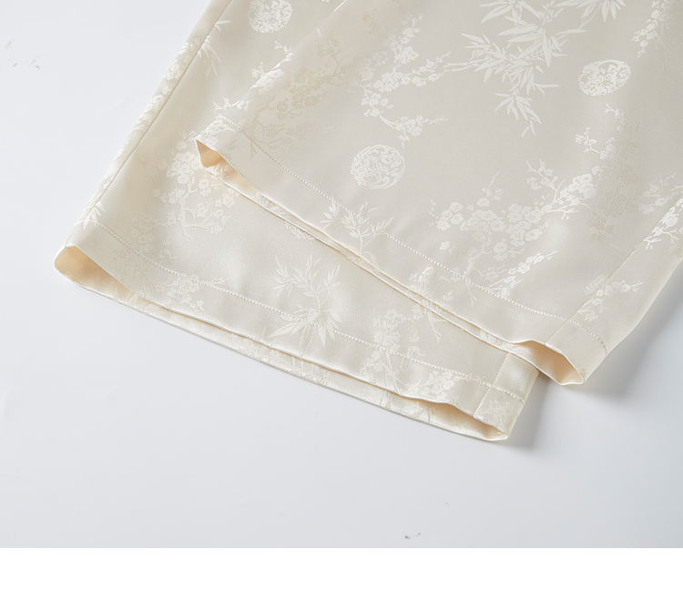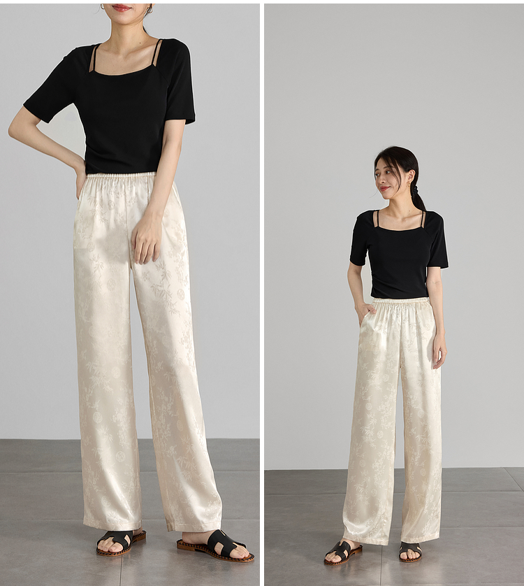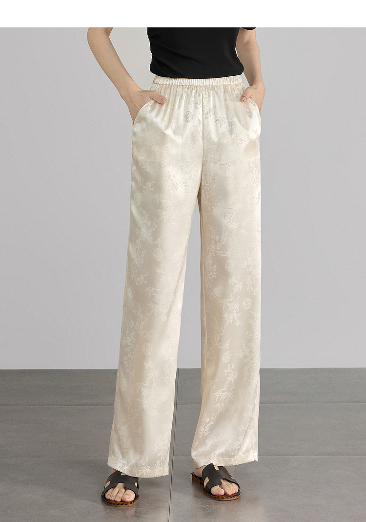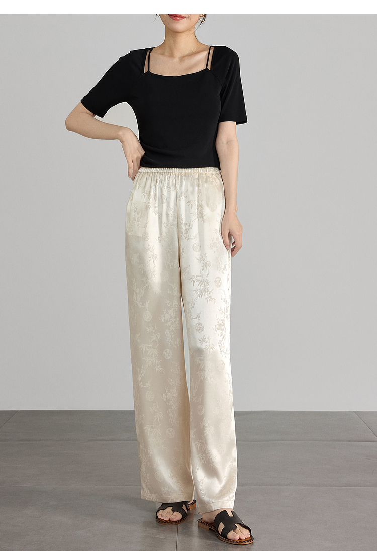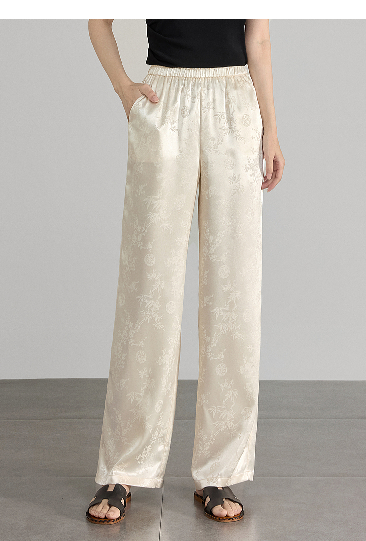 【专属特价】熙世界新中式国风提花阔腿裤夏薄款高腰宽松冰丝长裤缎面直筒裤