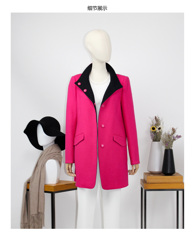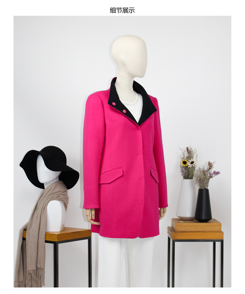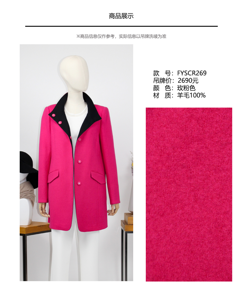 FOCALS福柯斯冬季新款修身长款撞色羊毛针织大衣外套FYSCR269106