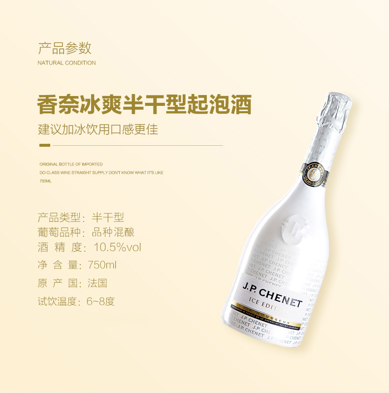 【热销爆款】法国香奈冰爽起泡酒香槟酒750ml 赠冰爽桃红起泡酒200ml