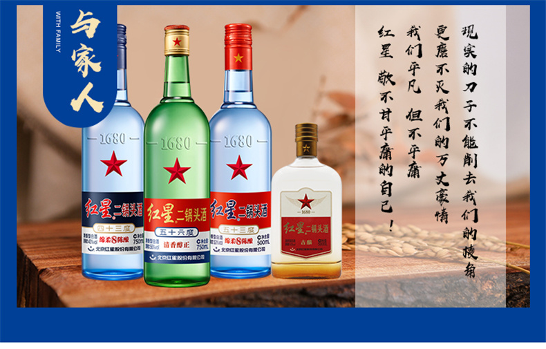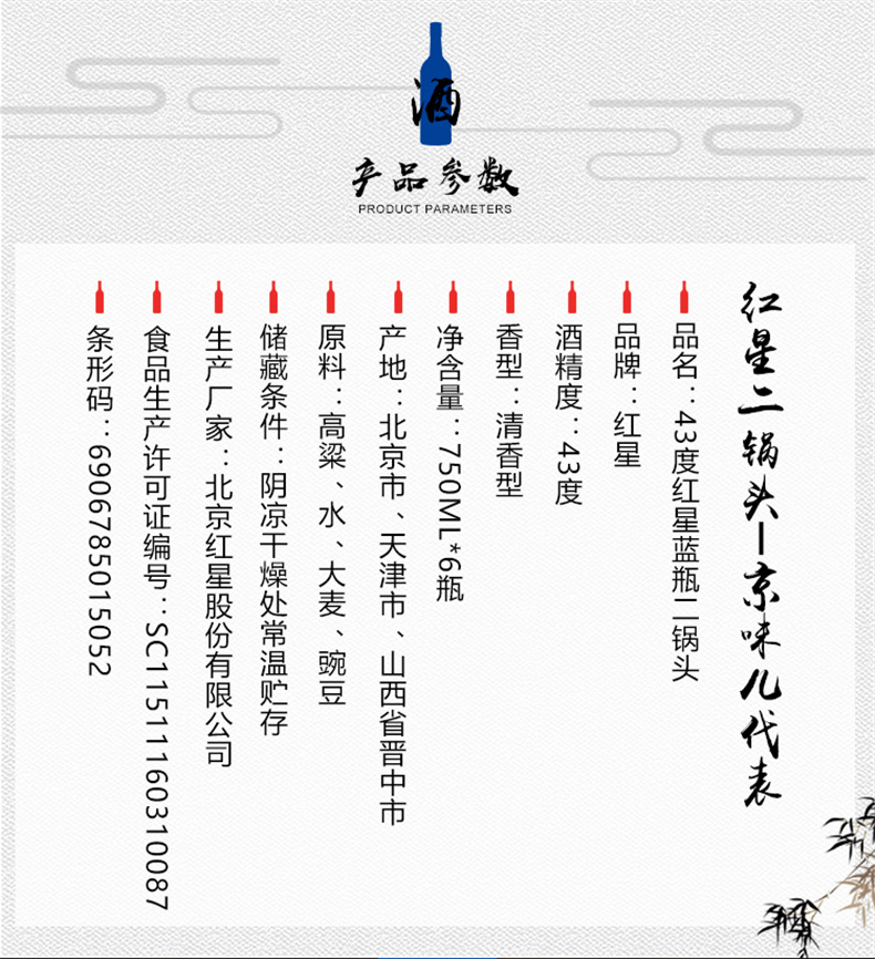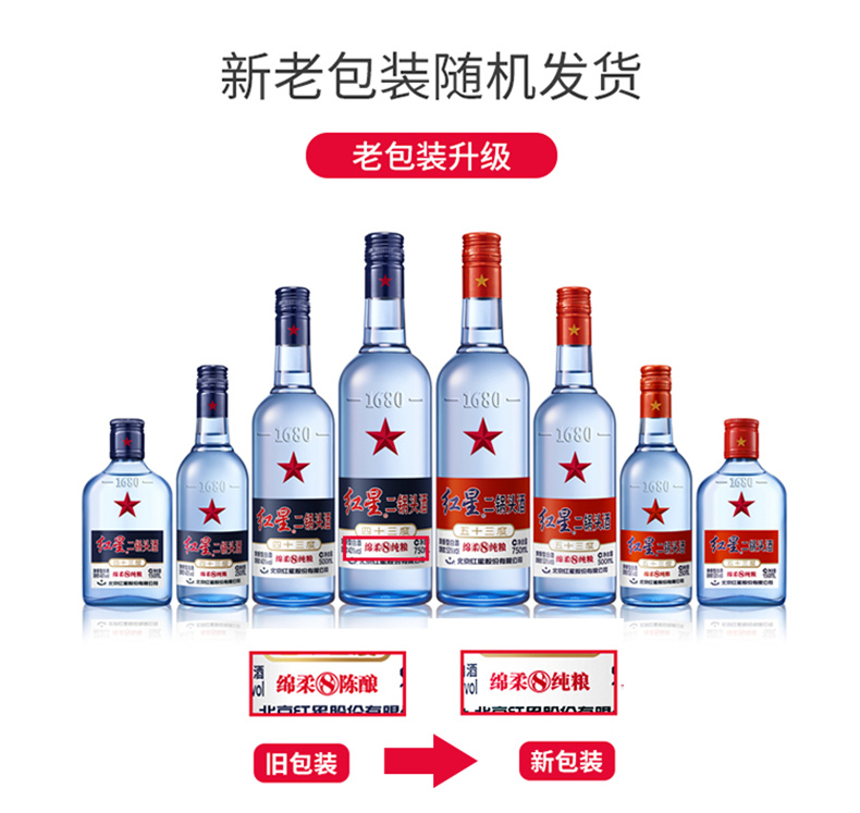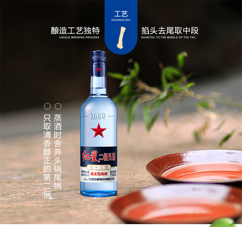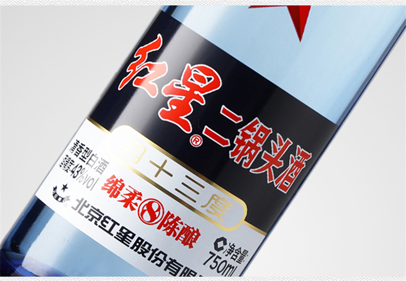北京红星二锅头43度 蓝瓶 750ml*6总厂 绵柔 8纯粮食酒 白酒 整箱