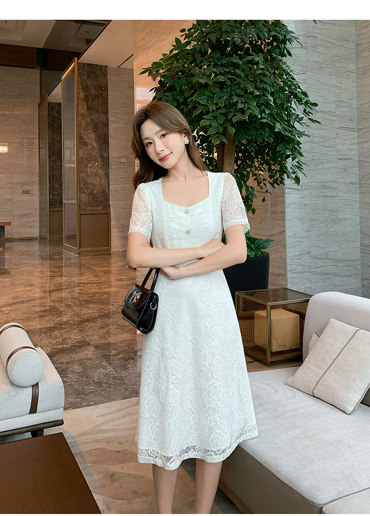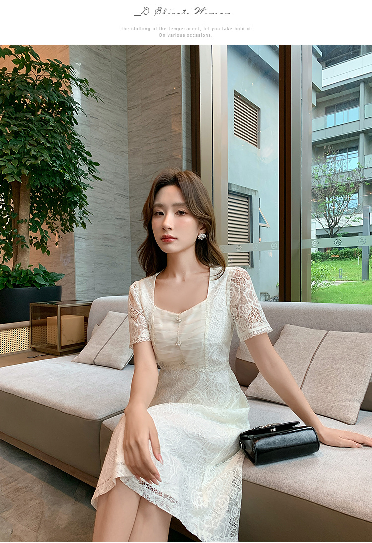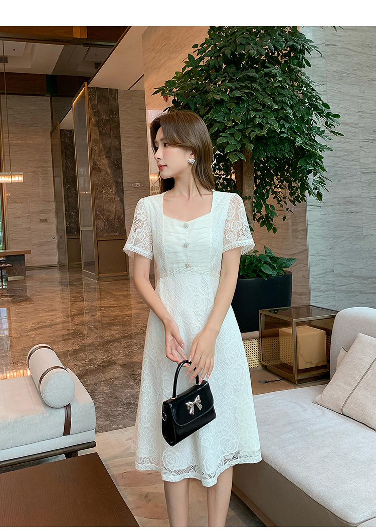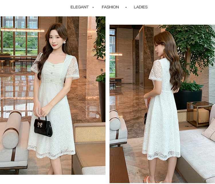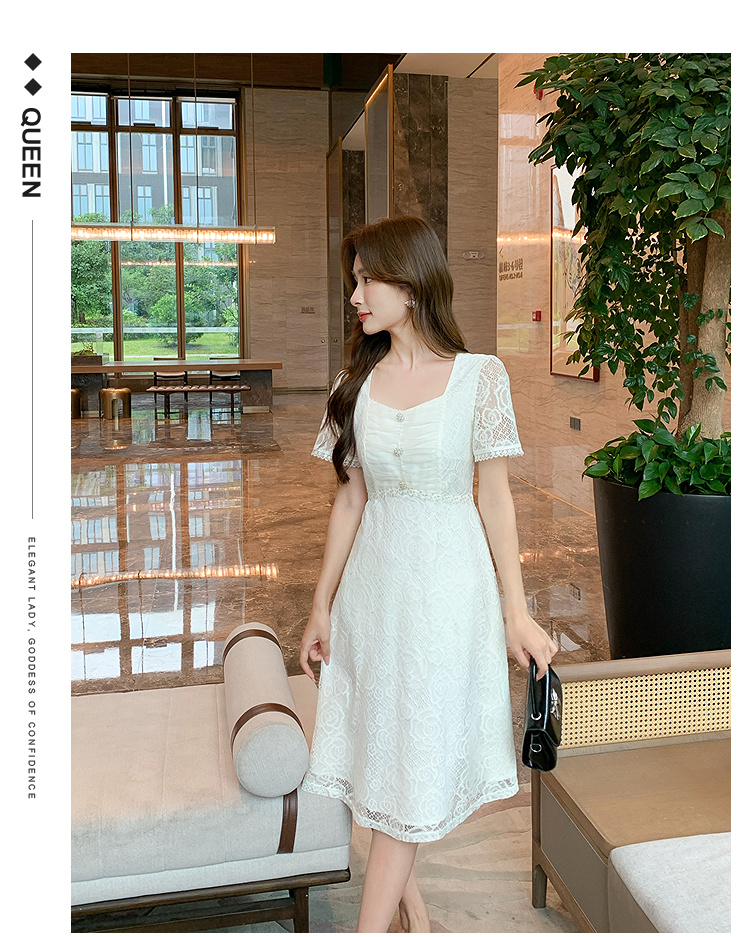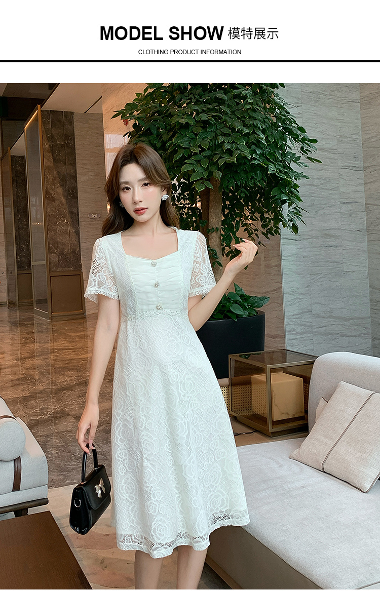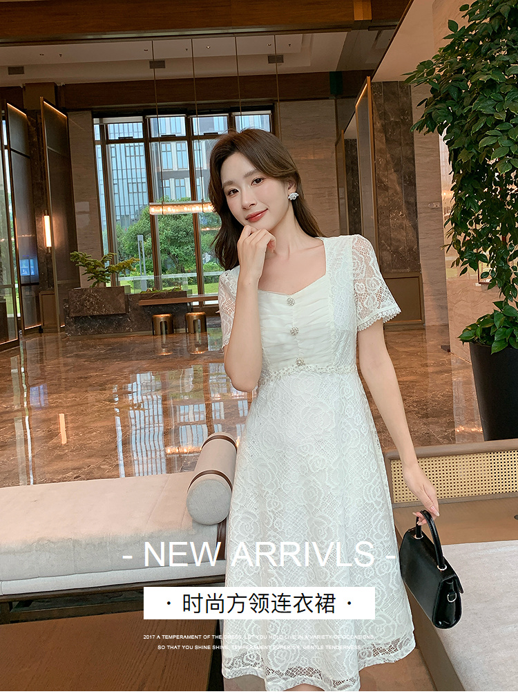 【清仓超15天不保价】奢姿大码女装2025夏季气质方领轻奢连衣裙胖妹妹蕾丝设计时尚裙子9952869791