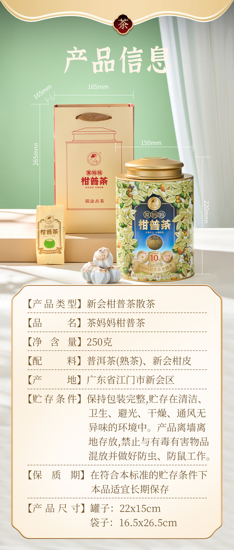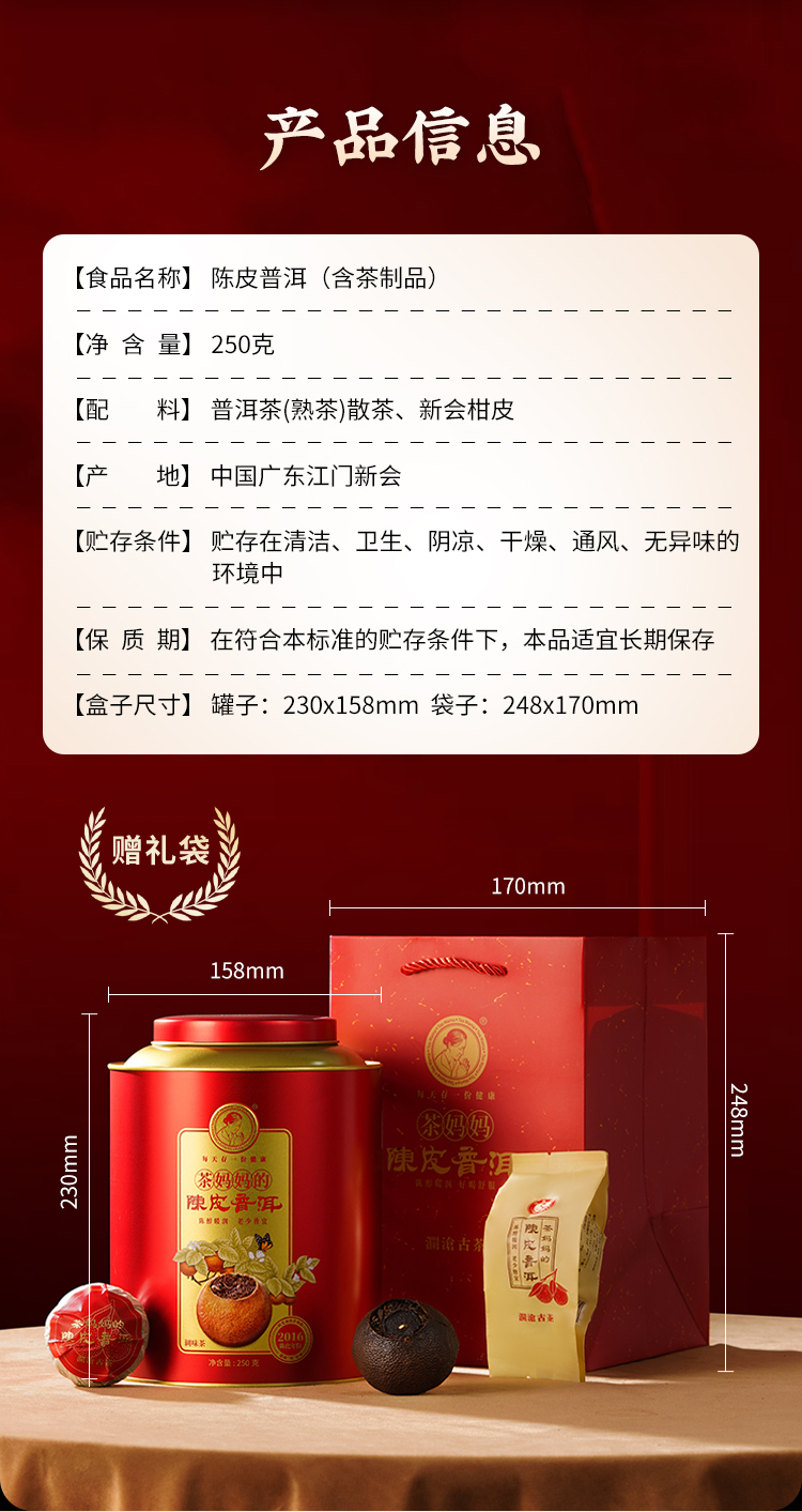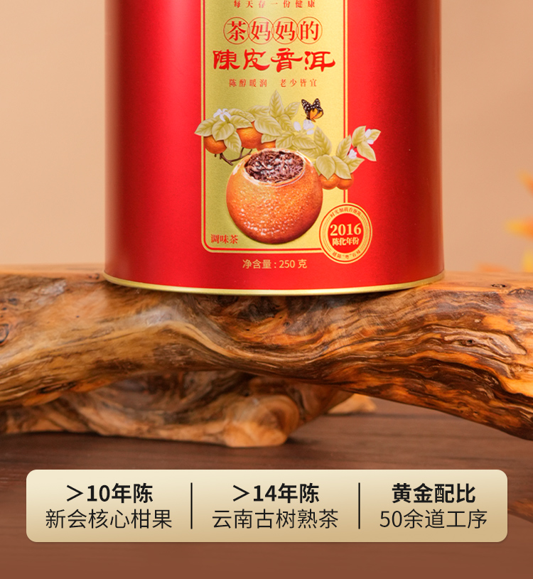 澜沧古茶2024年茶妈妈柑普茶+2016年茶妈妈大红柑普洱熟茶双罐组合500g