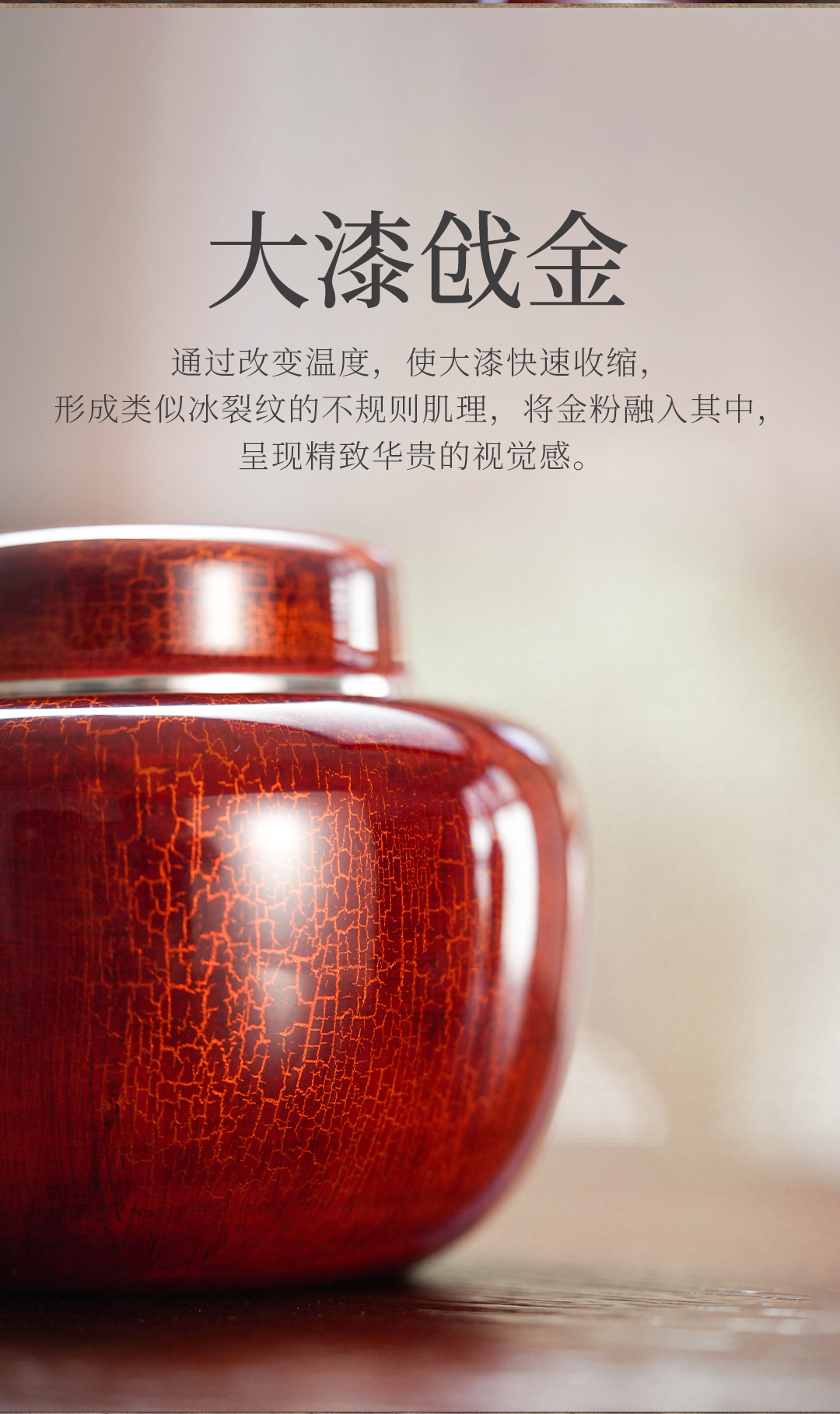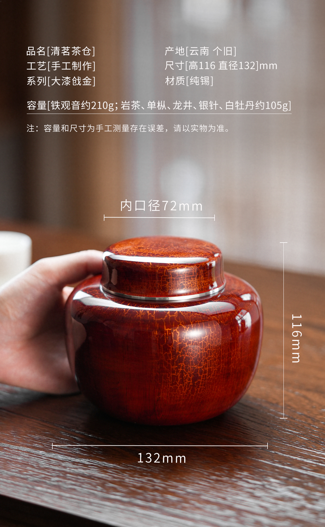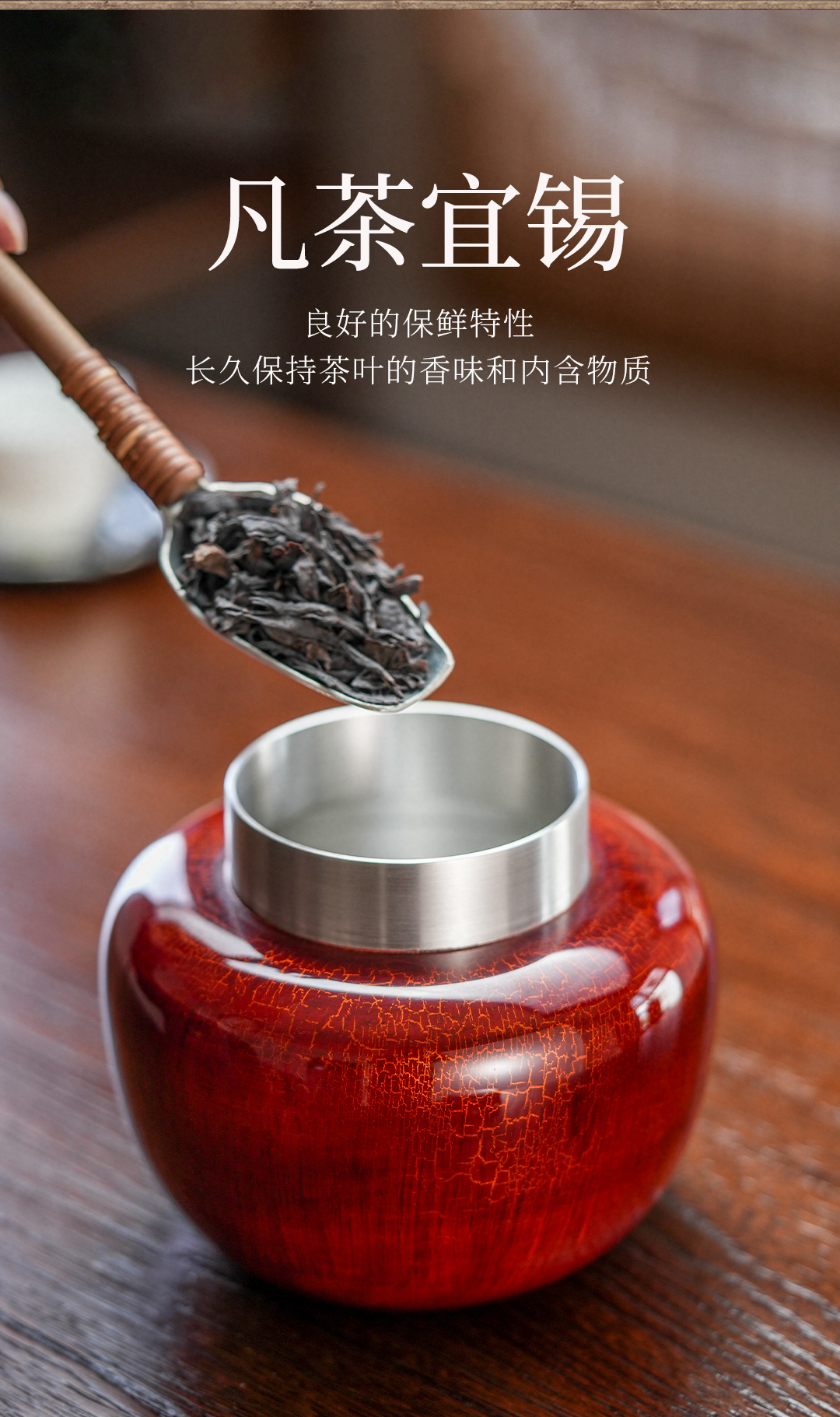 斑锡龙锡罐清茗茶仓大漆戗金纯锡中号密封茶叶罐储茶罐手工锡器
