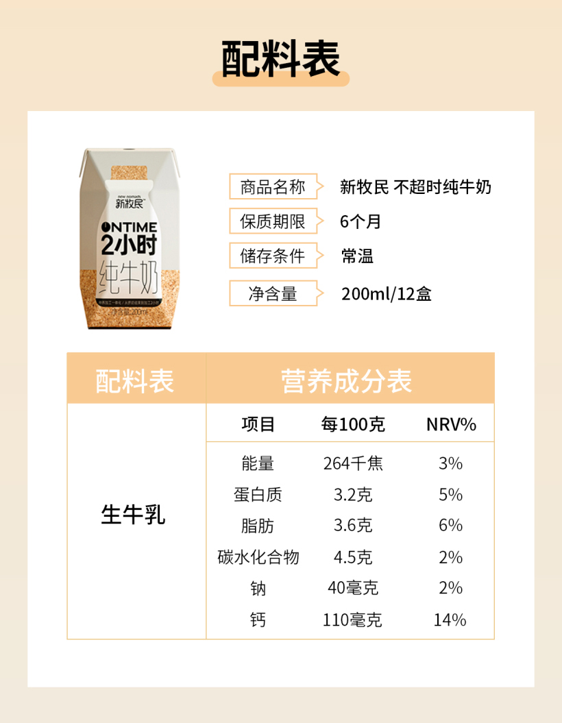 【尝鲜体验】新牧民2小时纯牛奶200ml*3提