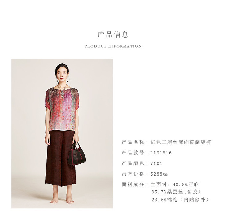 TANGY Collection天意红色三层丝麻绡阔腿裤
