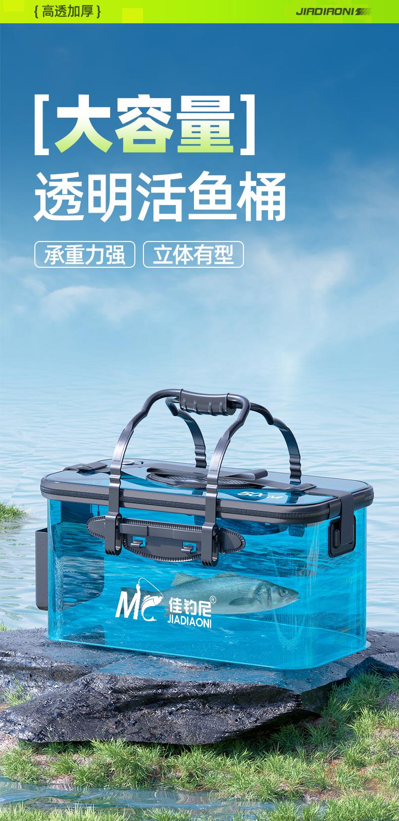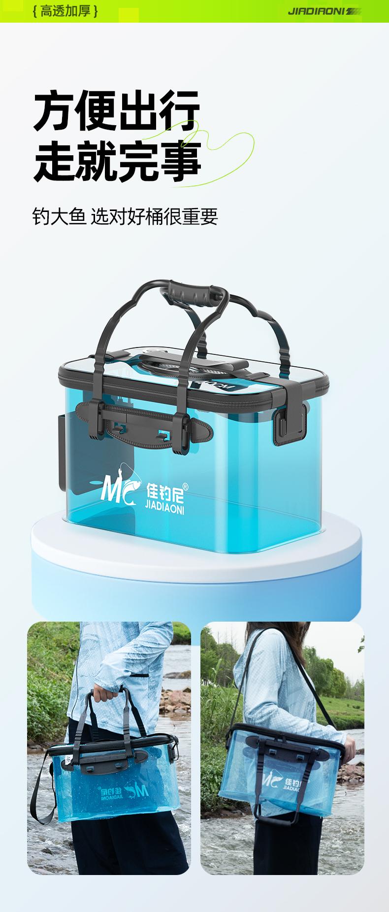 佳钓尼透明活鱼桶钓鱼装鱼箱可折叠钓箱加厚防漏耐磨编织打水桶