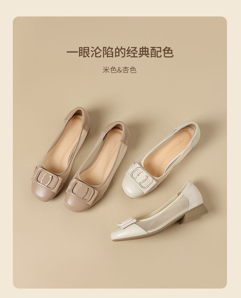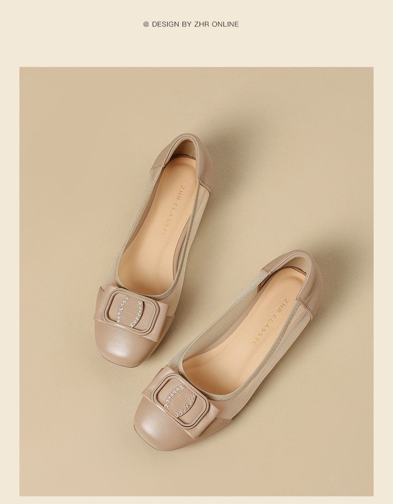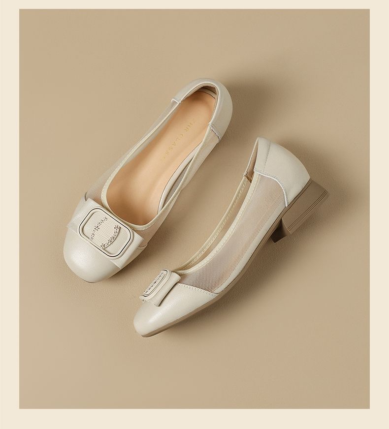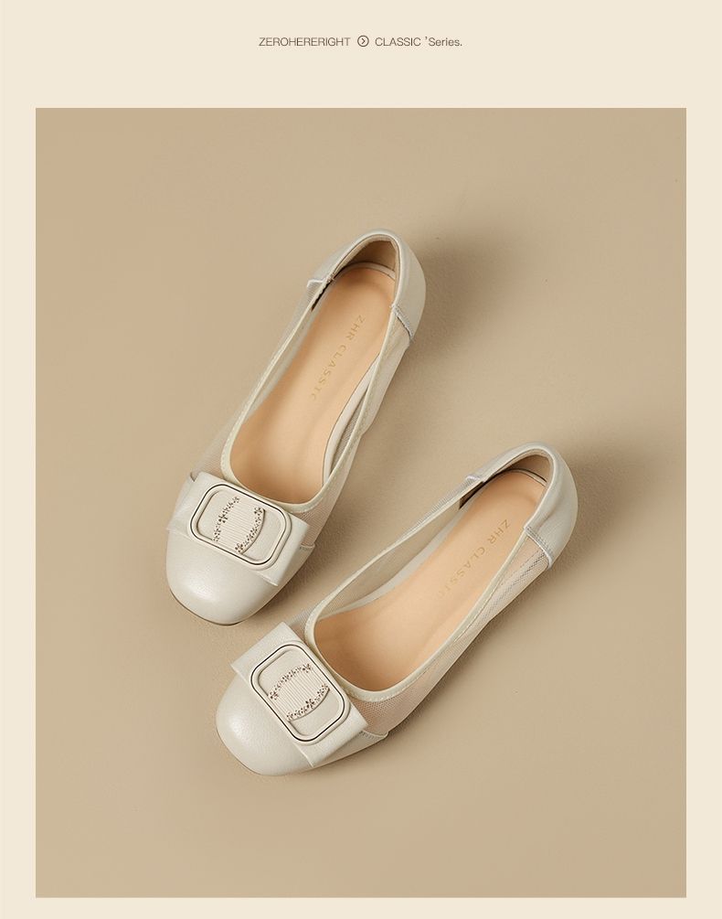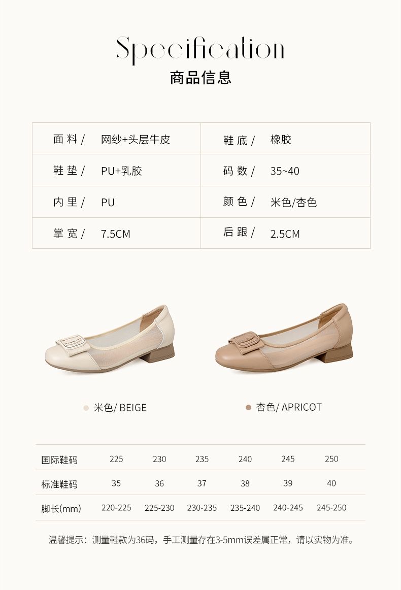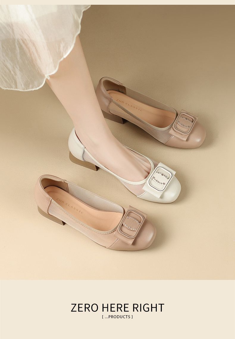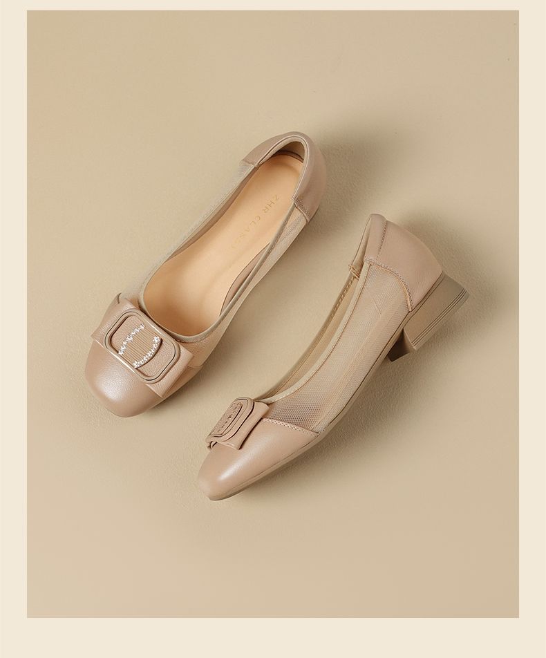 ZHR则则头层牛皮真皮透气网纱镂空浅口粗跟单鞋2025新款百搭女鞋