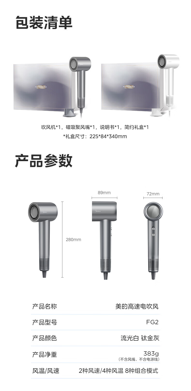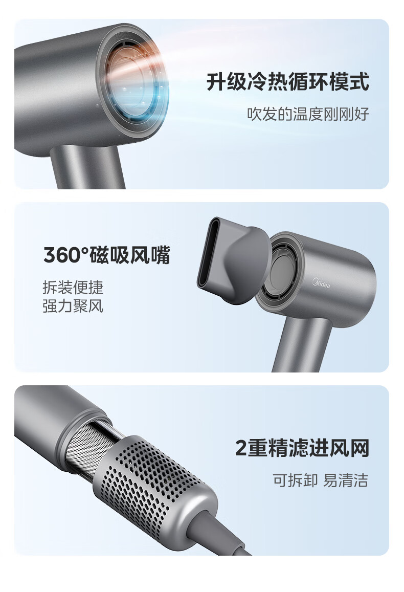 美的(Midea) FG2 高速吹风机家用吹风筒大功率/高浓度负离子护发/大风力速干/低噪