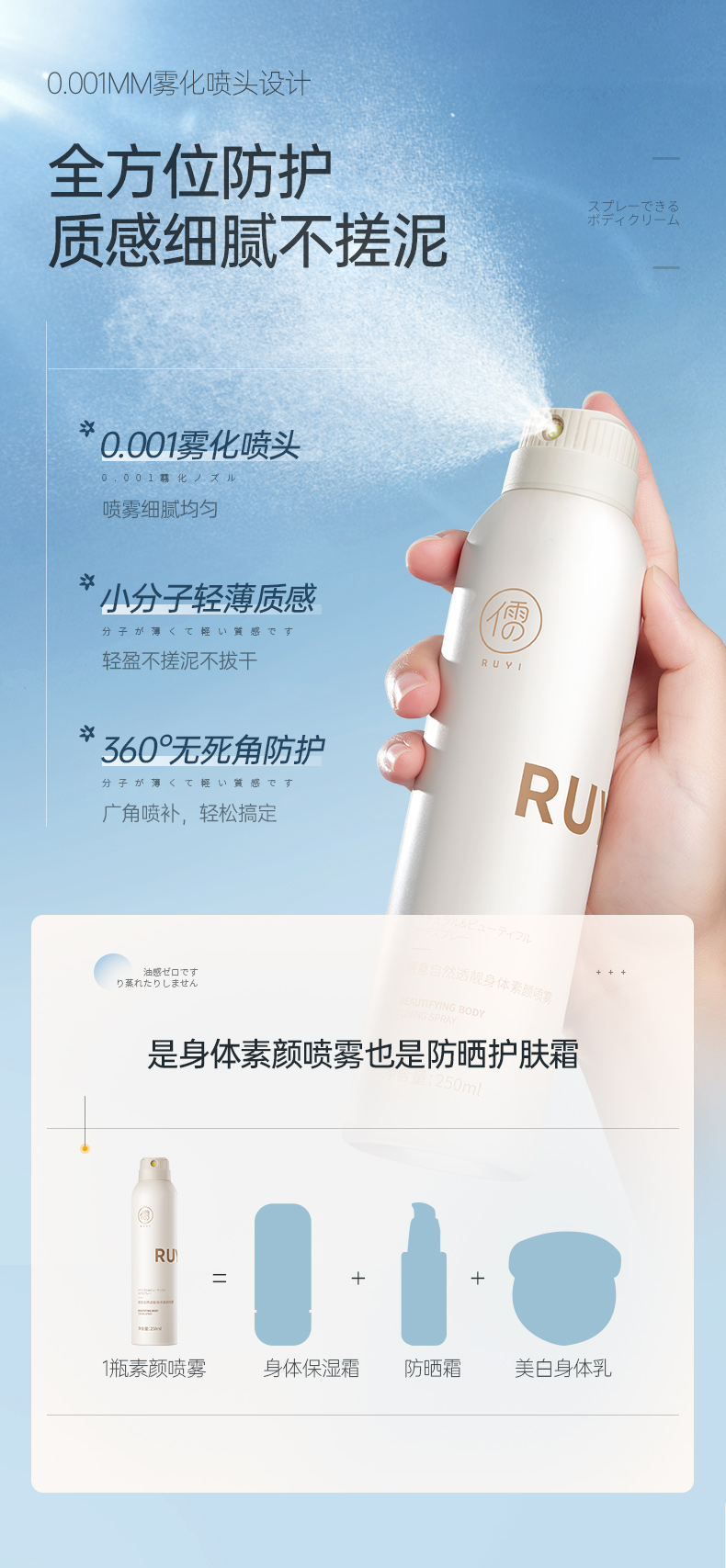 【🔥爆款满减|最高立减¥50】身体素颜霜美白身体乳全身冷白皮防晒喷雾隔离遮瑕裸妆神器女|儒意官方旗舰店