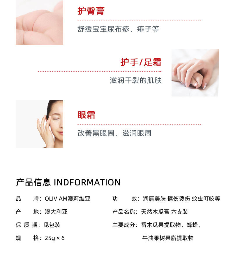 【中欧班列精选】 澳洲木瓜膏 原装进口Oliviam/澳莉维亚木瓜膏6支家庭装