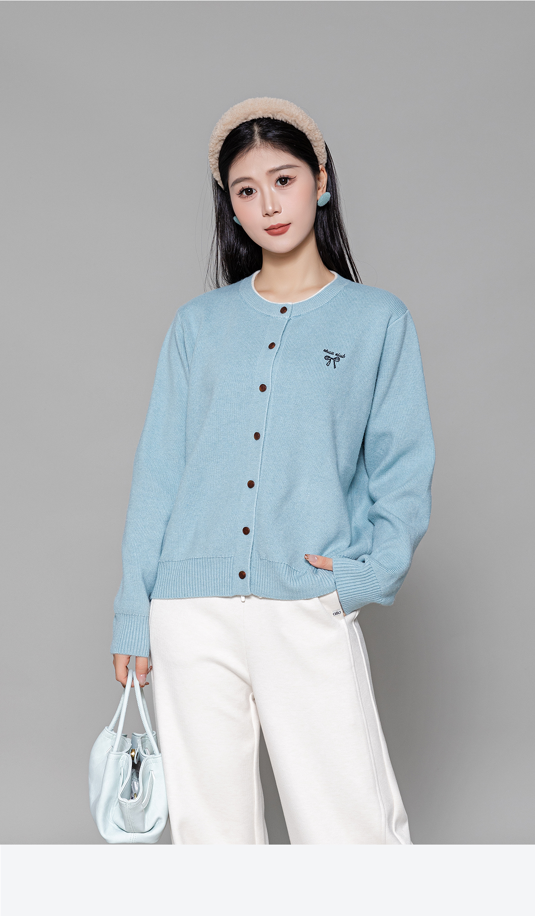冬上新必备基础款浅蓝圆领单穿叠穿都超百搭开衫2254071
