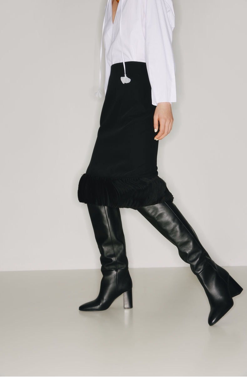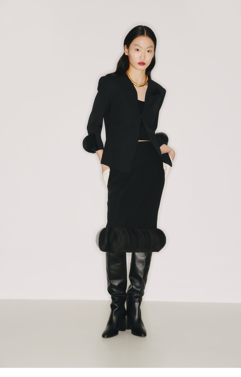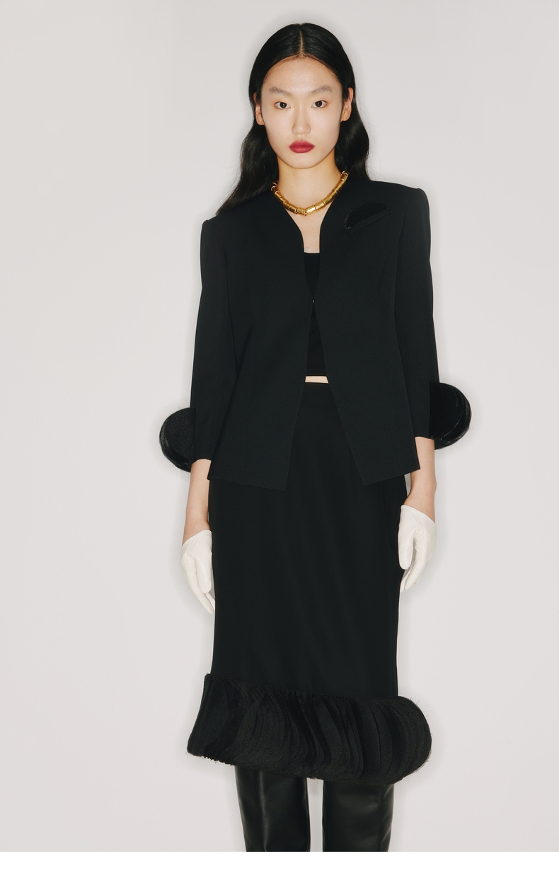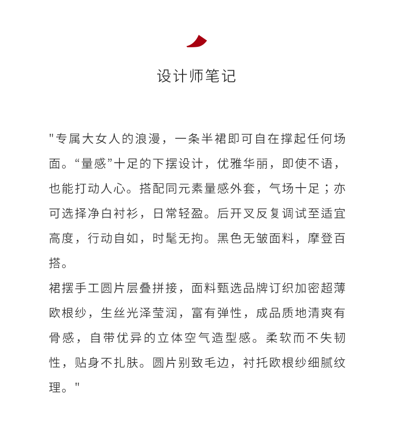 【琴尾】下摆重工圆片薄纱拼接黑色半裙/220001A