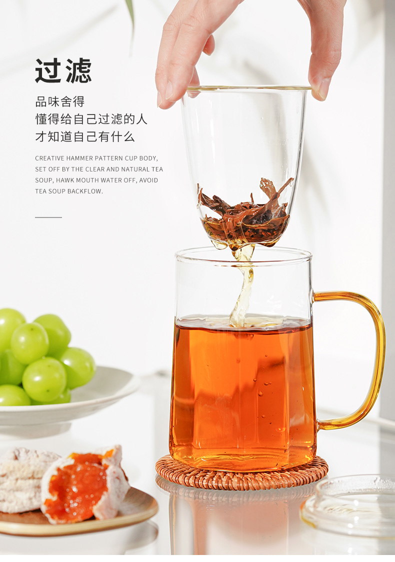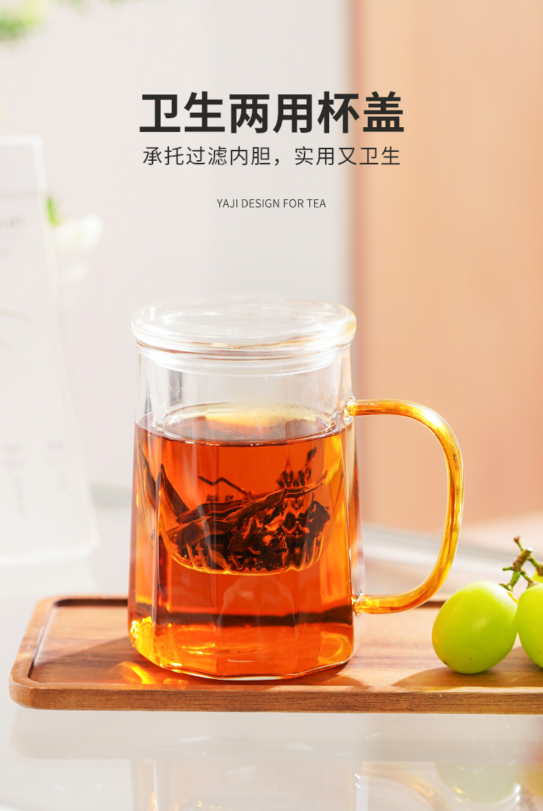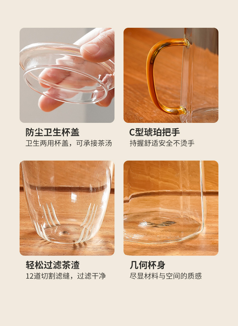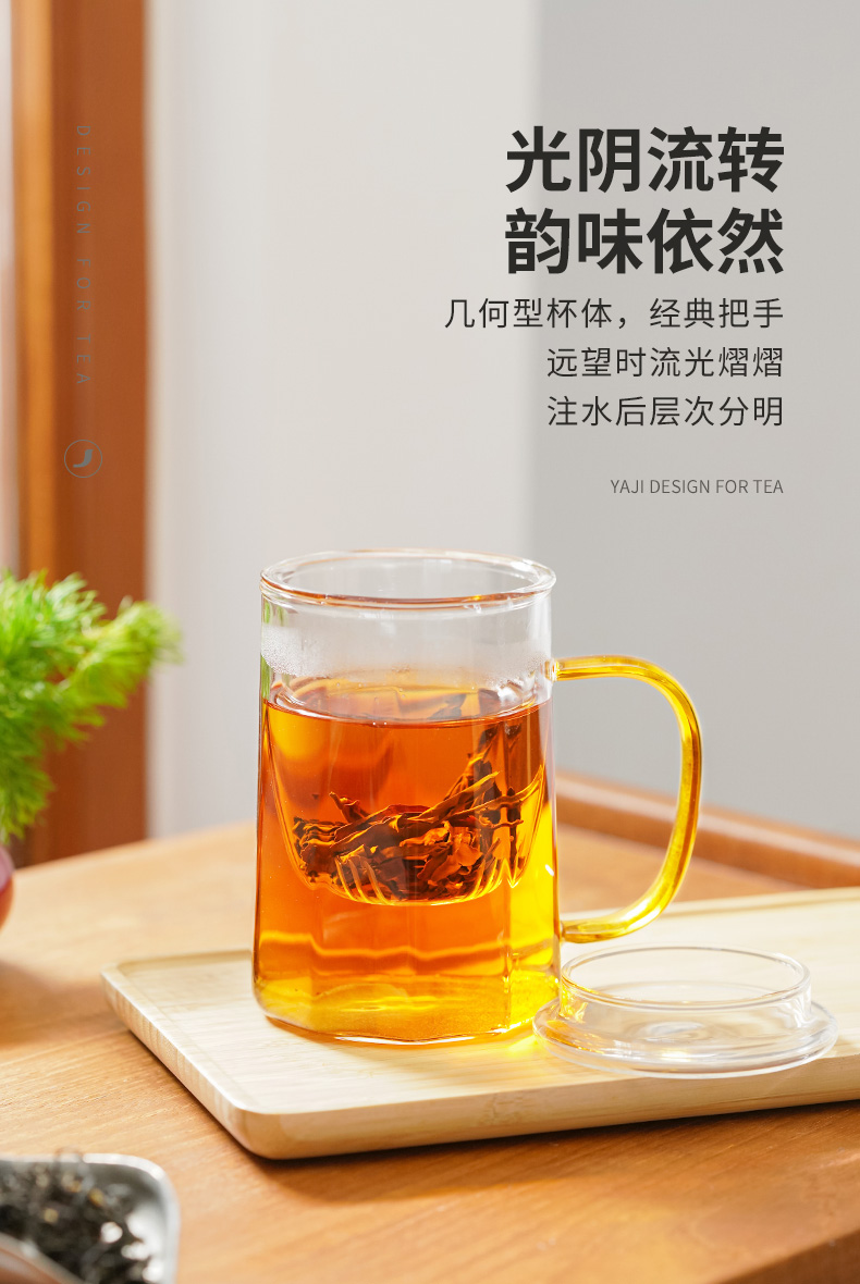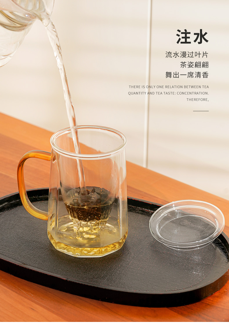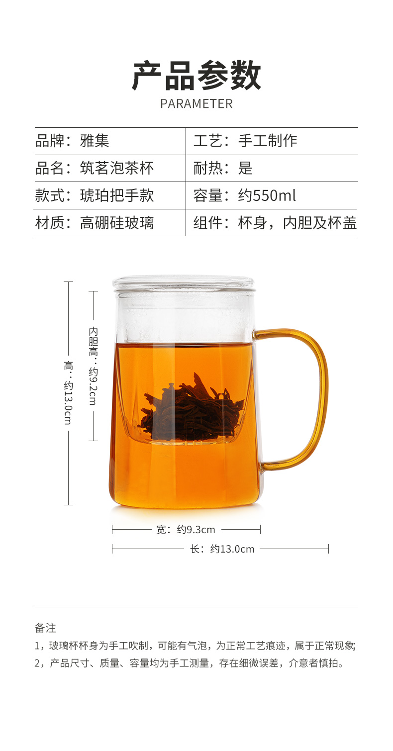 雅集玻璃杯筑茗杯550ml(光面款-琥珀把)