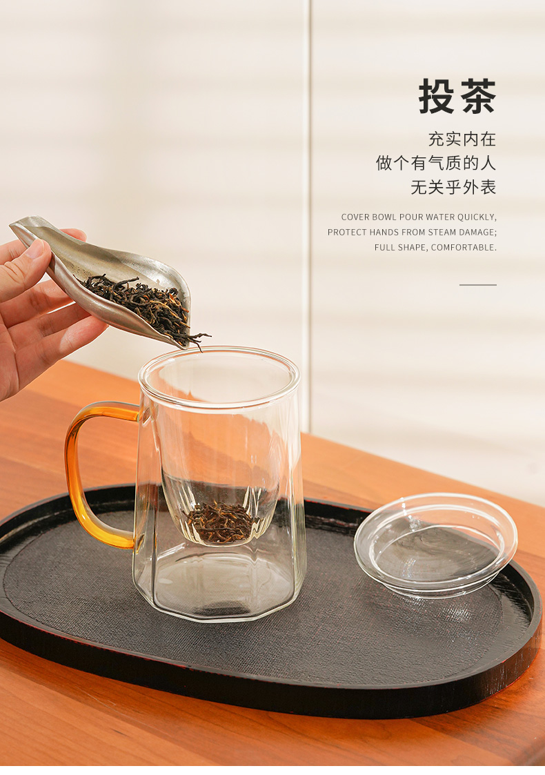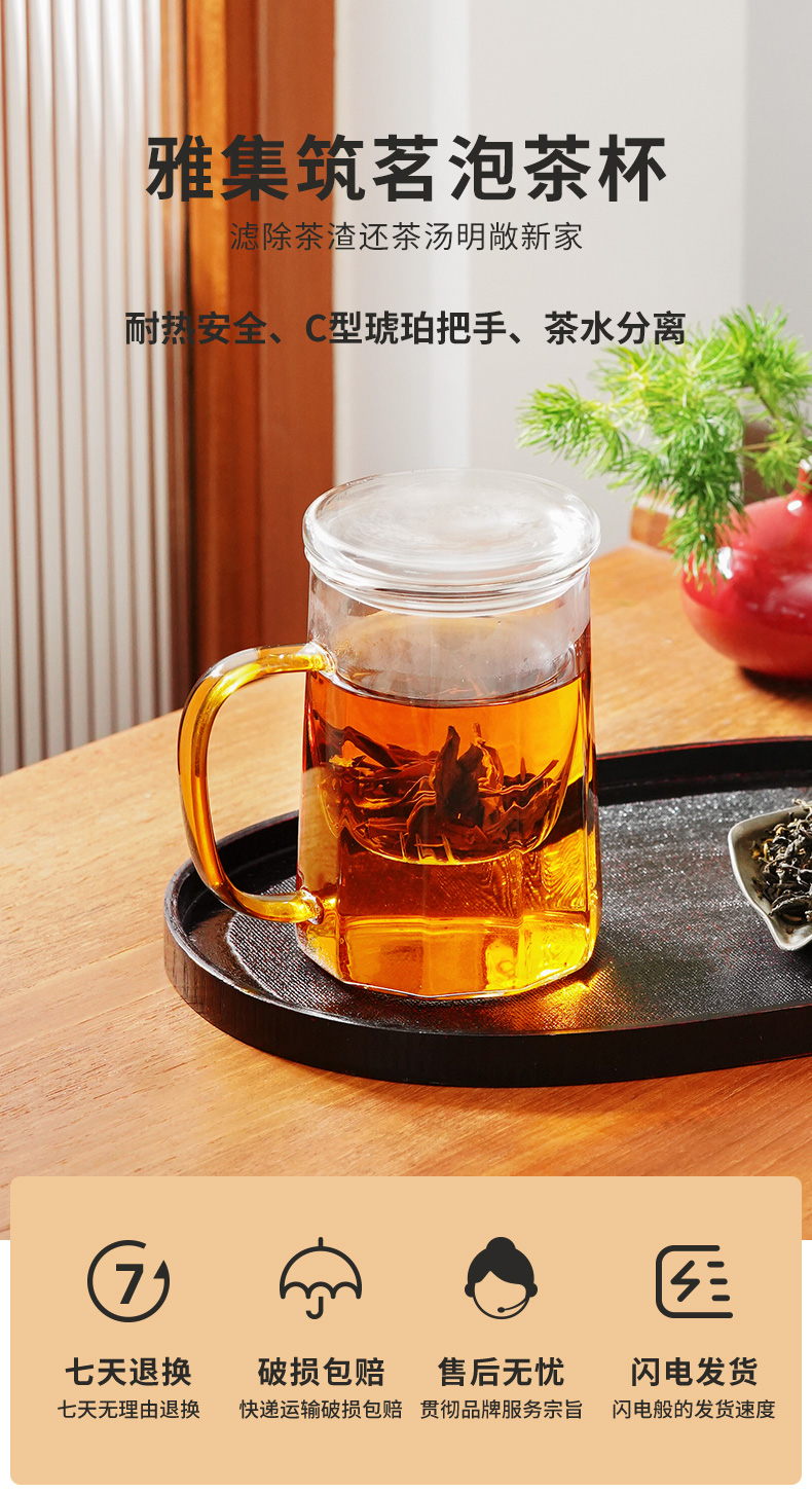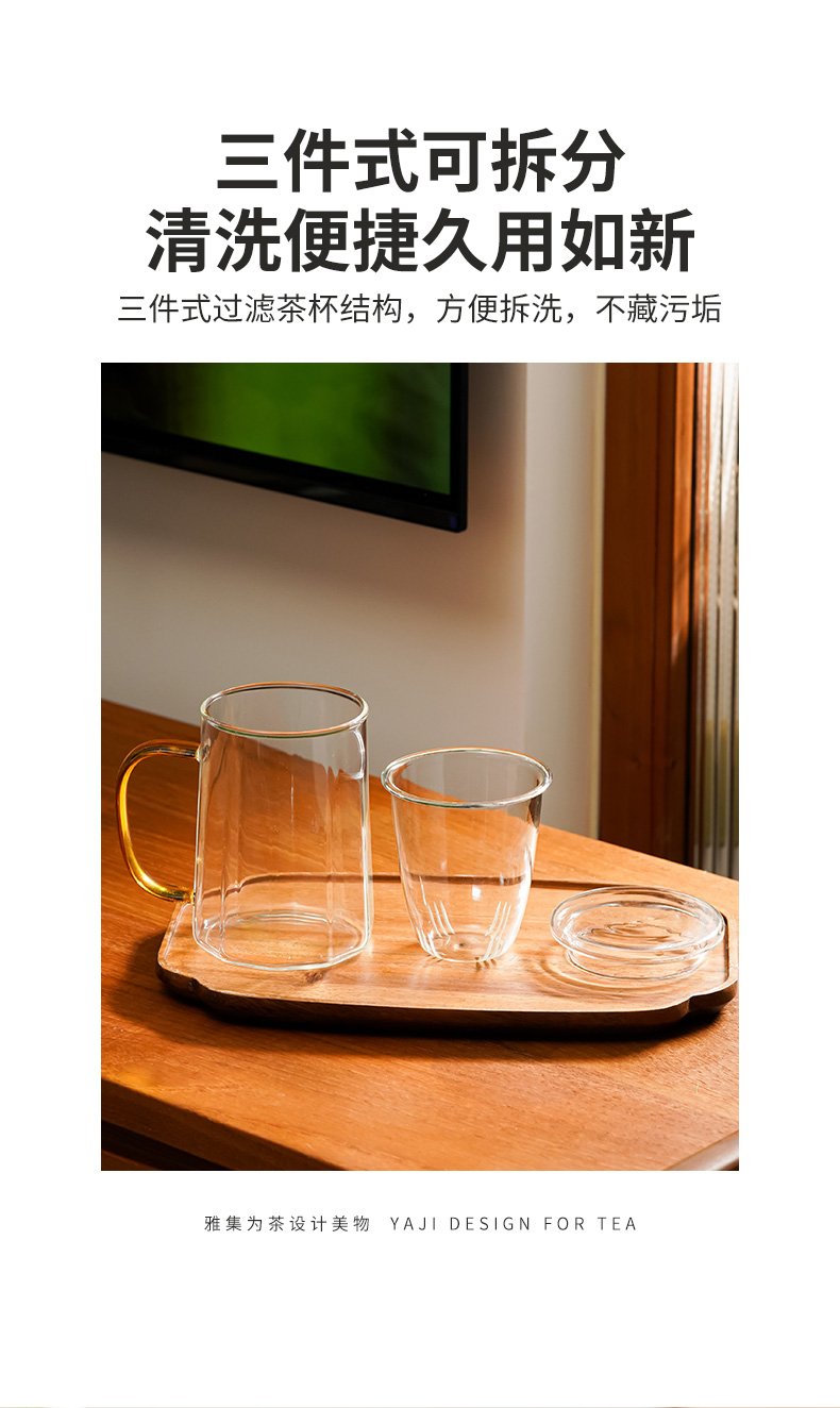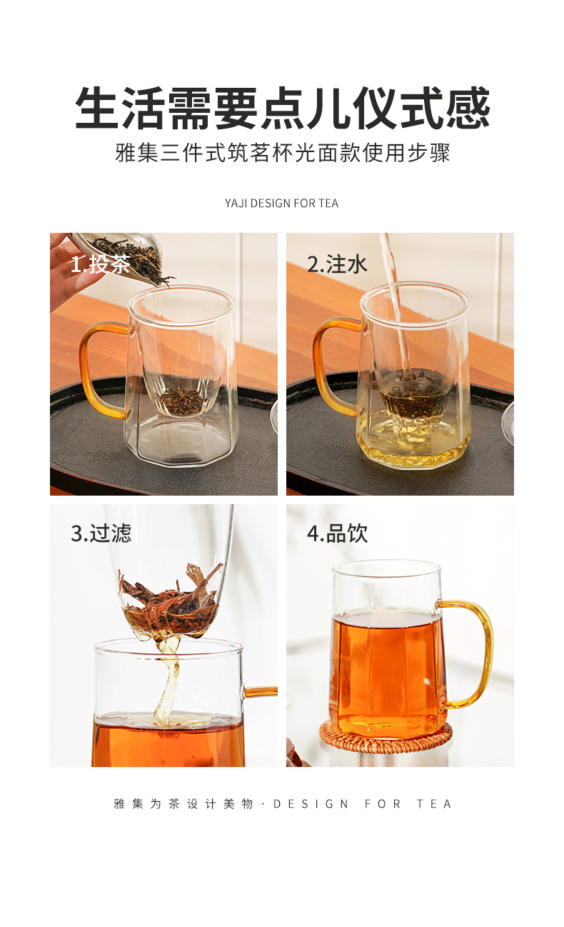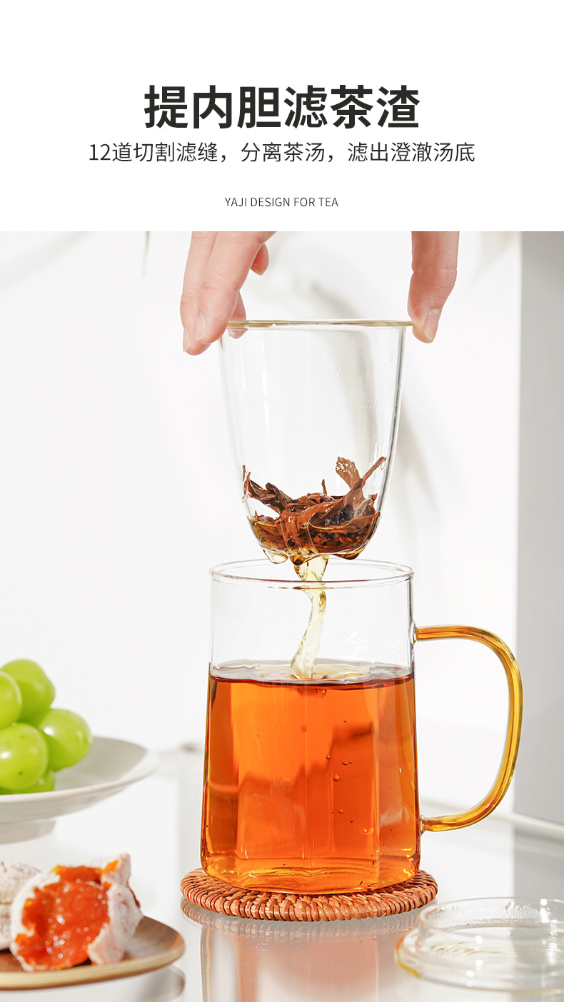 雅集玻璃杯筑茗杯550ml(光面款-琥珀把)
