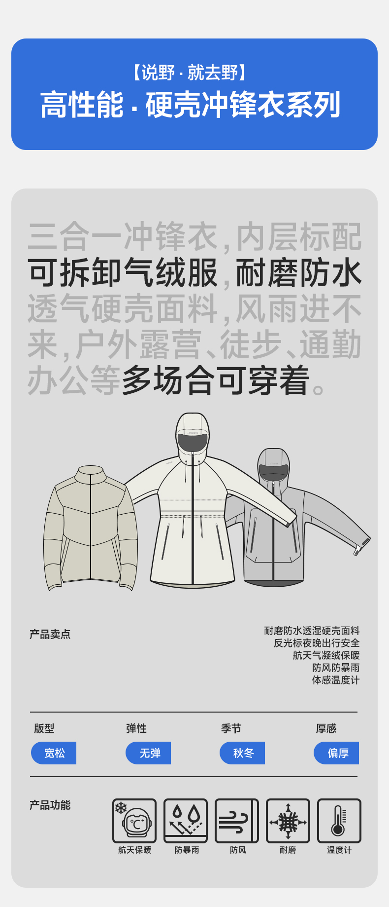 Supield素湃气绒冲锋衣可拆卸三合一防风防暴雨户外进藏登山外套