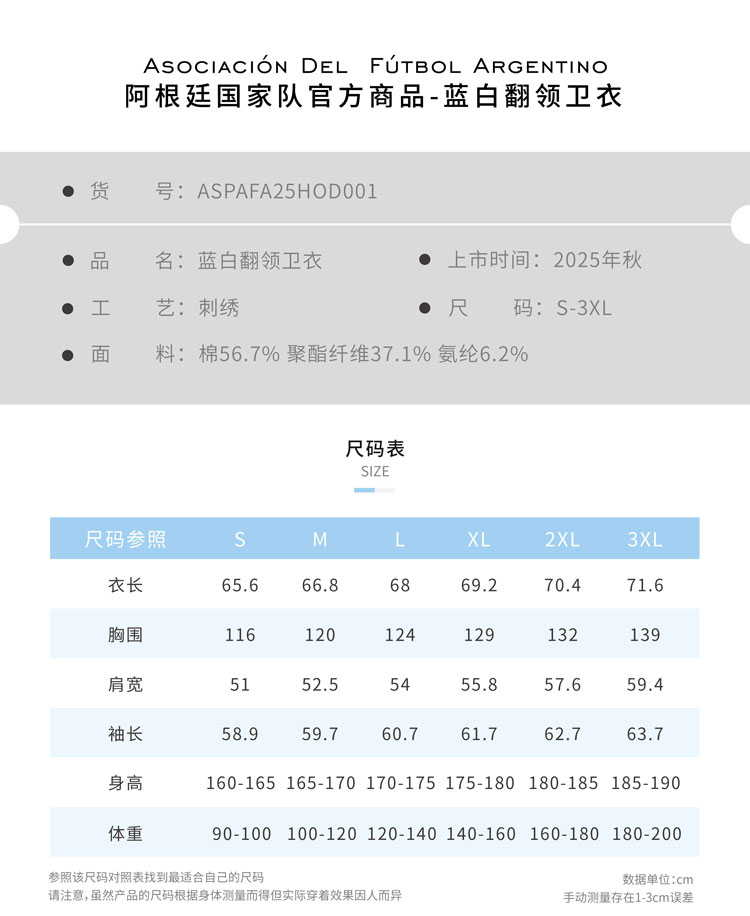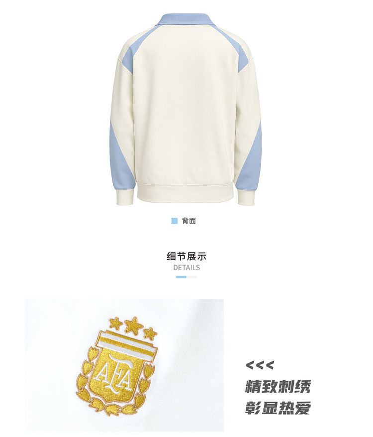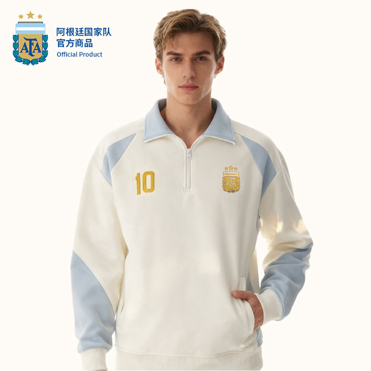 【官方正版】阿根廷国家队 | 秋季新款蓝白翻领卫衣简约百搭长袖